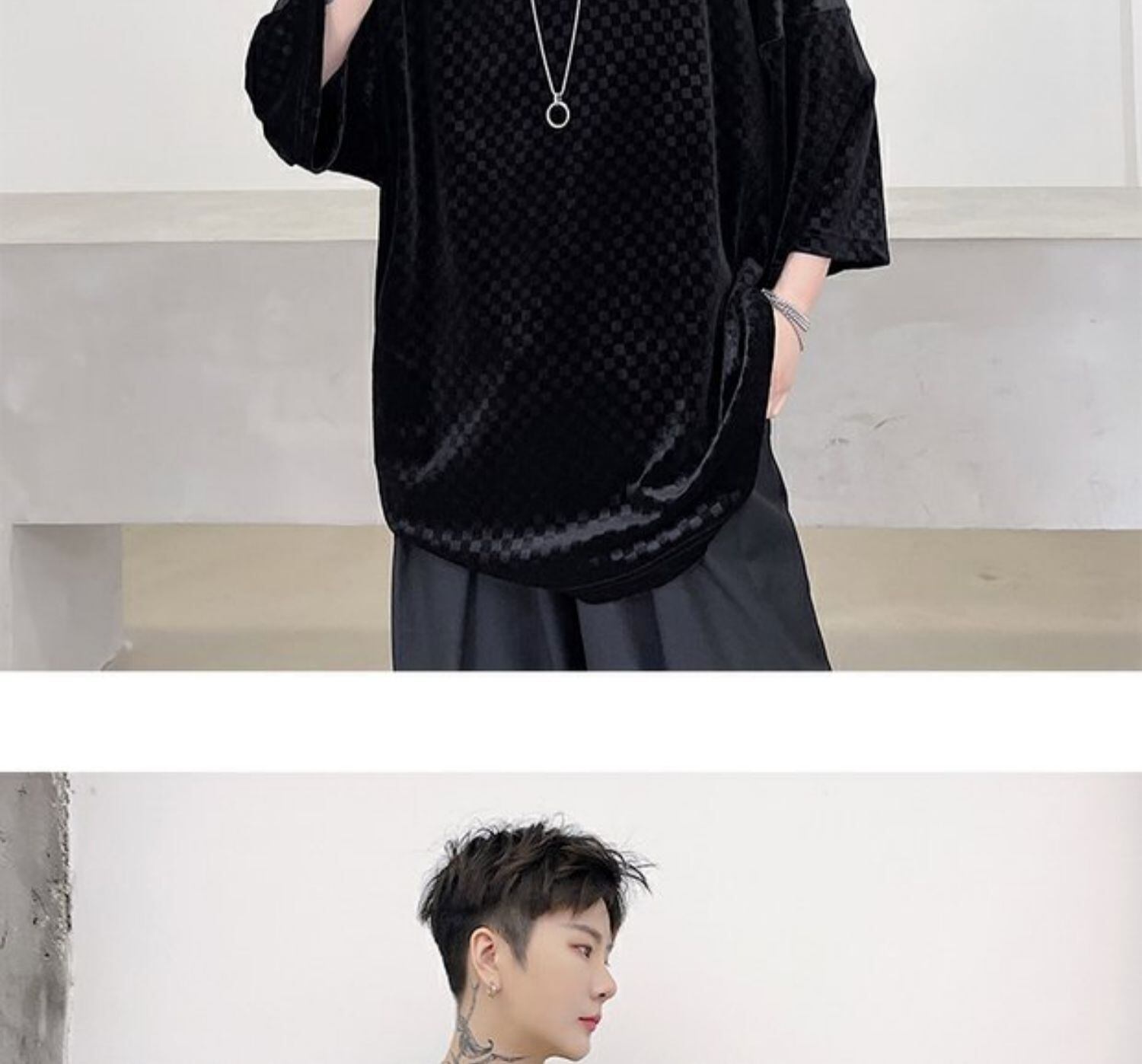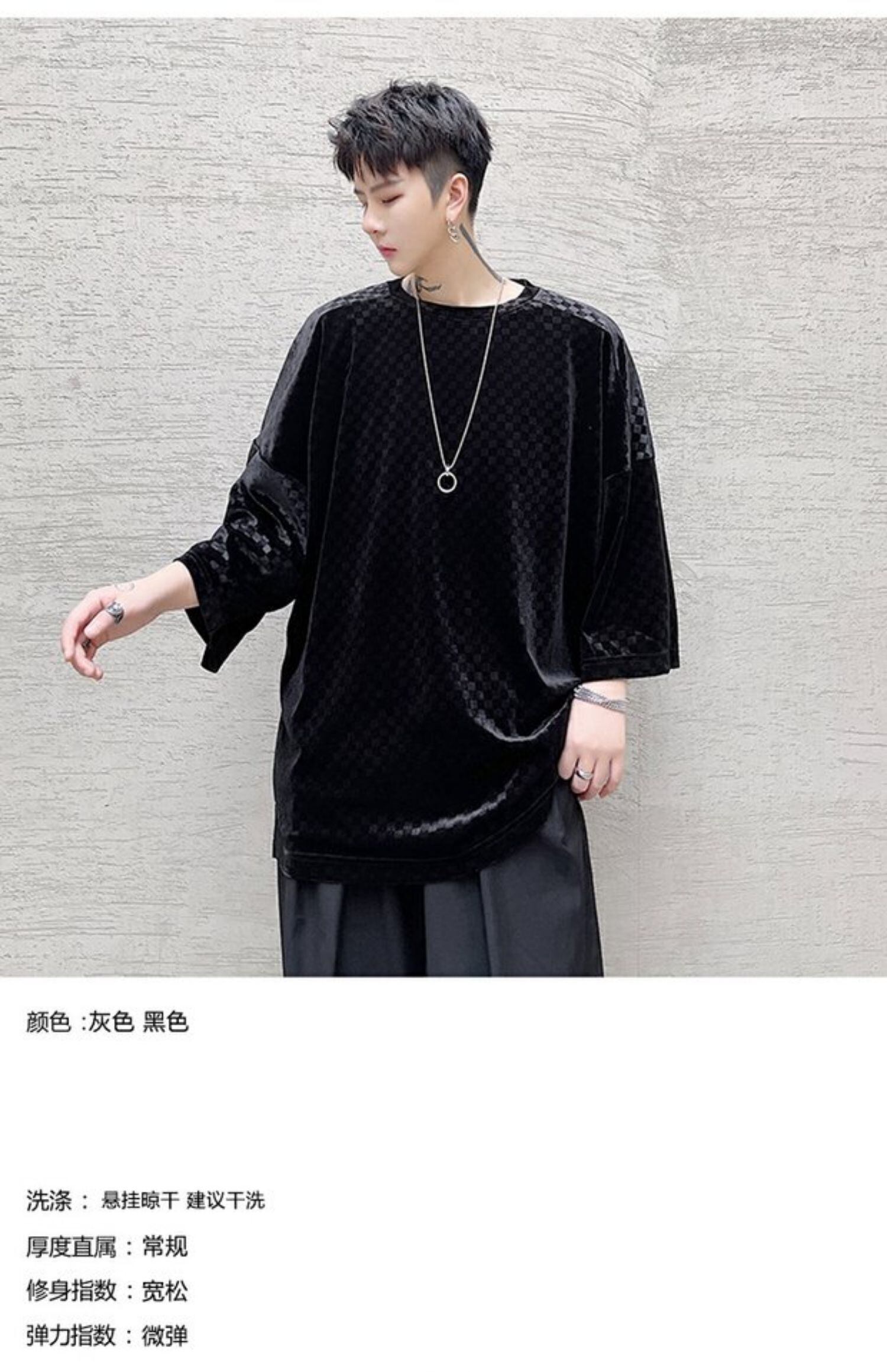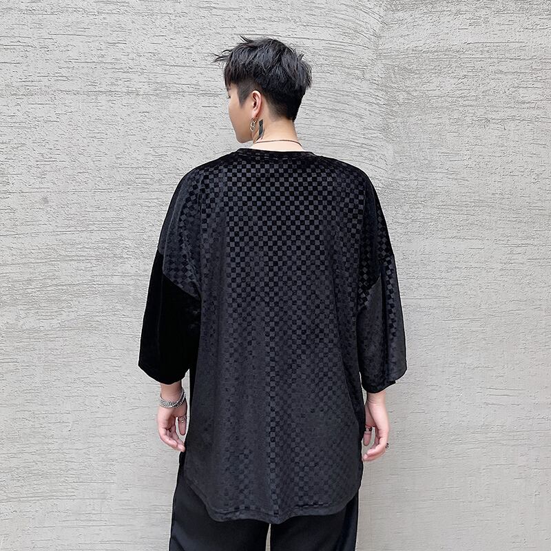 病みカッコイイ メンズファッション ストリートファッション ヒップホップ 個性的 裏原 サマースタンダードスタイルベルベットTシャツ ルーズレッドトップス 格子柄半袖スリーブ レトロ ハーフスリーブ 夏物 ✝ おしゃれ メンズ 91385482181