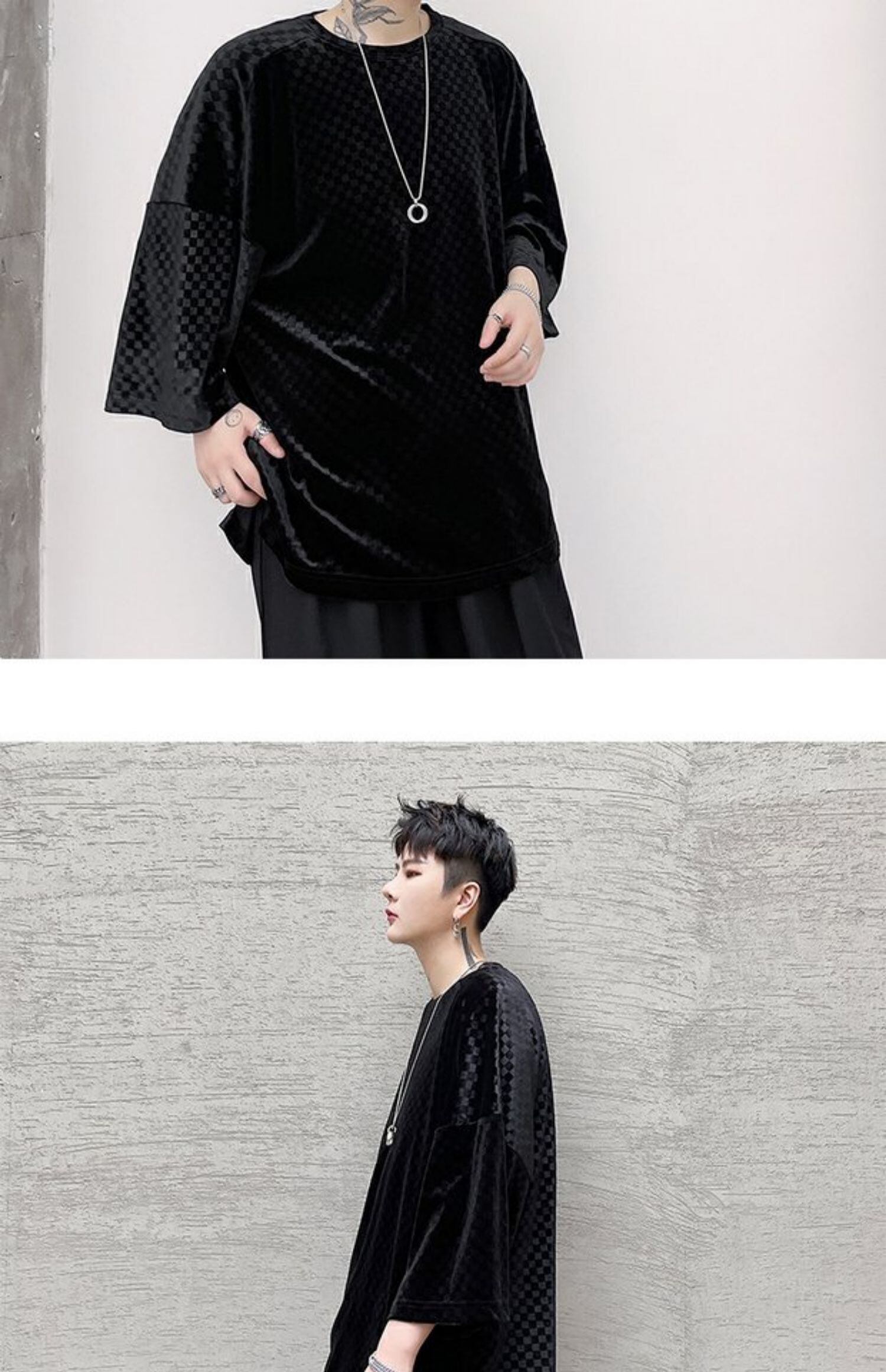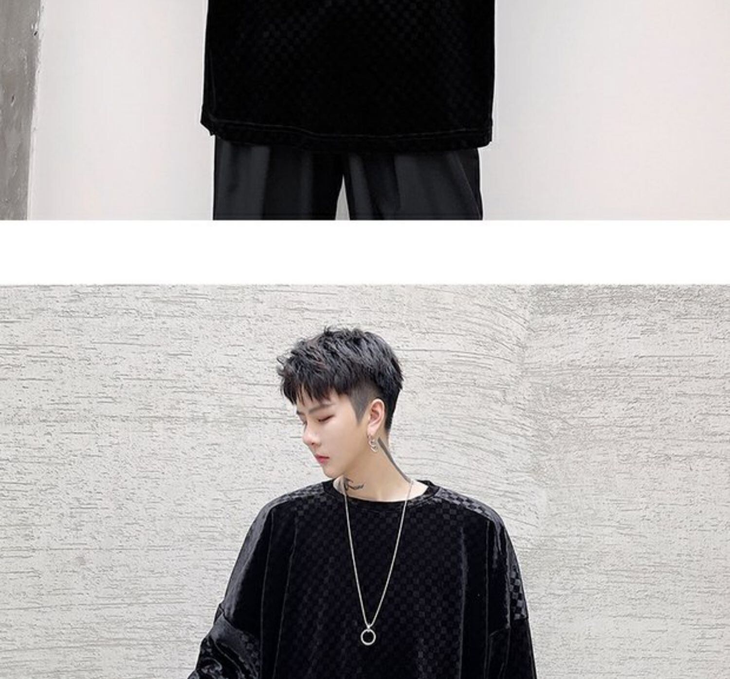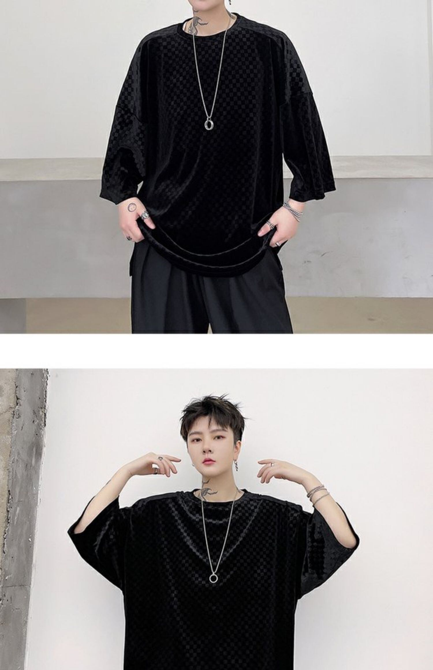 病みカッコイイ メンズファッション ストリートファッション ヒップホップ 個性的 裏原 サマースタンダードスタイルベルベットTシャツ ルーズレッドトップス 格子柄半袖スリーブ レトロ ハーフスリーブ 夏物 ✝ おしゃれ メンズ 91385482181