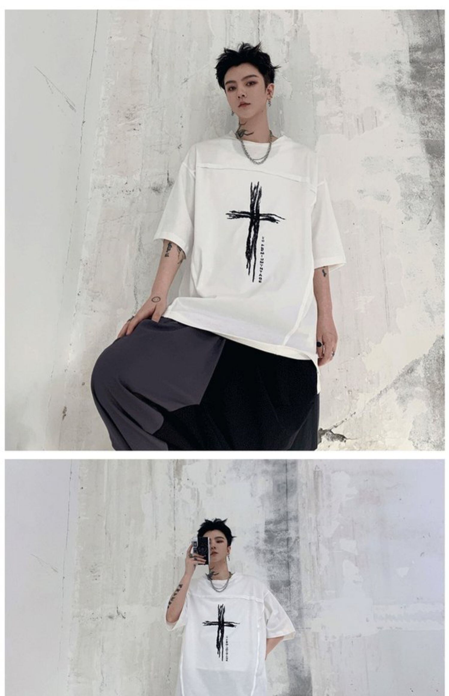 病みカッコイイ メンズファッション ストリートファッション ヒップホップ 個性的 裏原 サマースタイルクロスプリントTシャツ ルーズトップス 夏物 ✝ おしゃれ メンズ 89896372274
