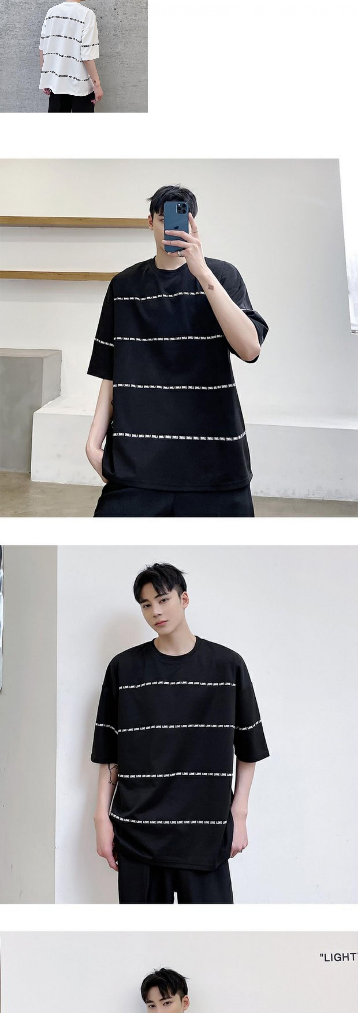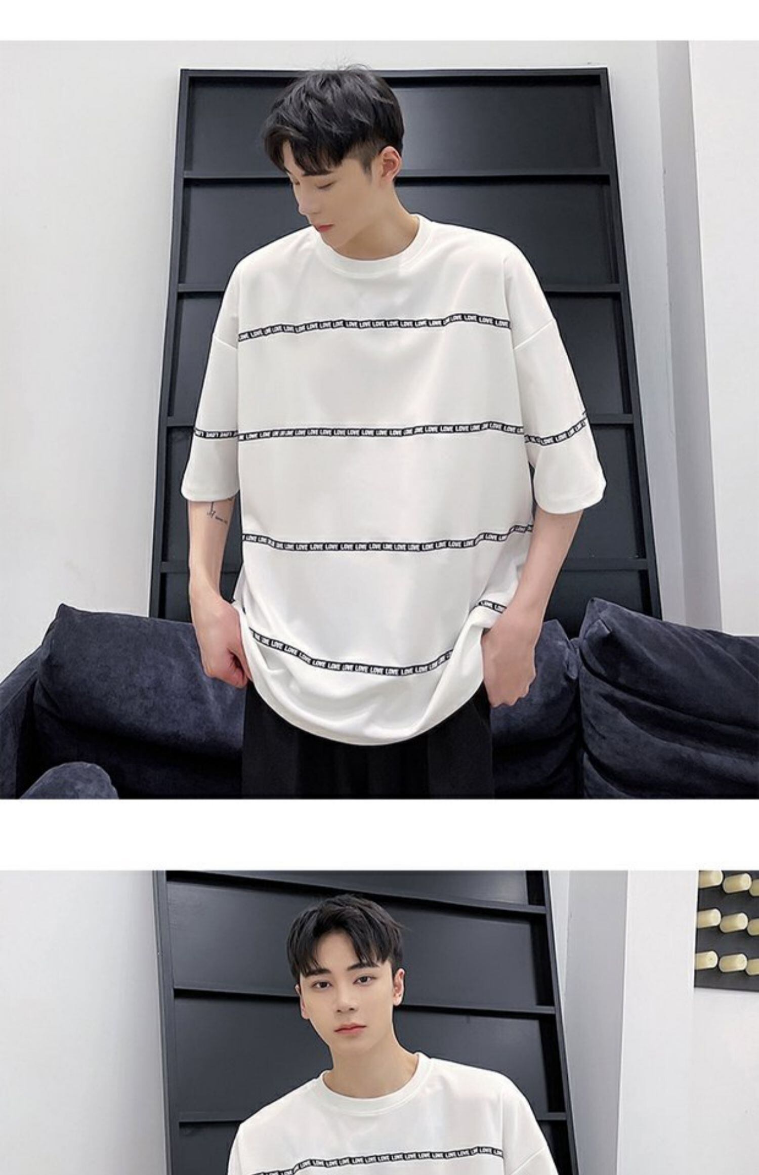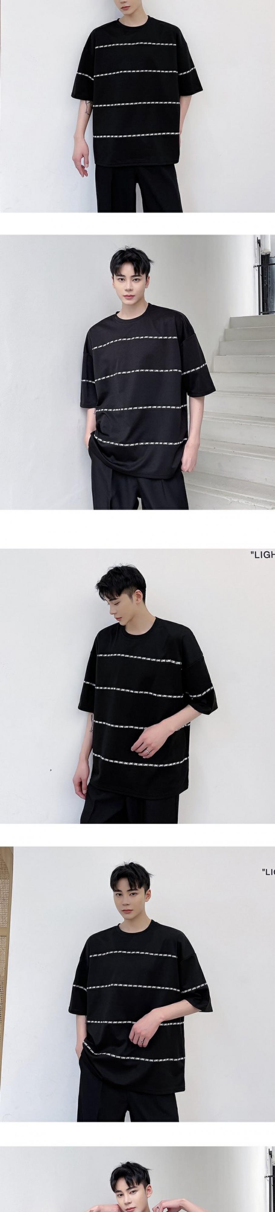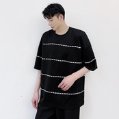 病みカッコイイ メンズファッション ストリートファッション ヒップホップ 個性的 裏原 サマーストライプTシャツ シャツ ルーズカジュアル 夏物 ステッチ ✝ おしゃれ メンズ 72111820948
