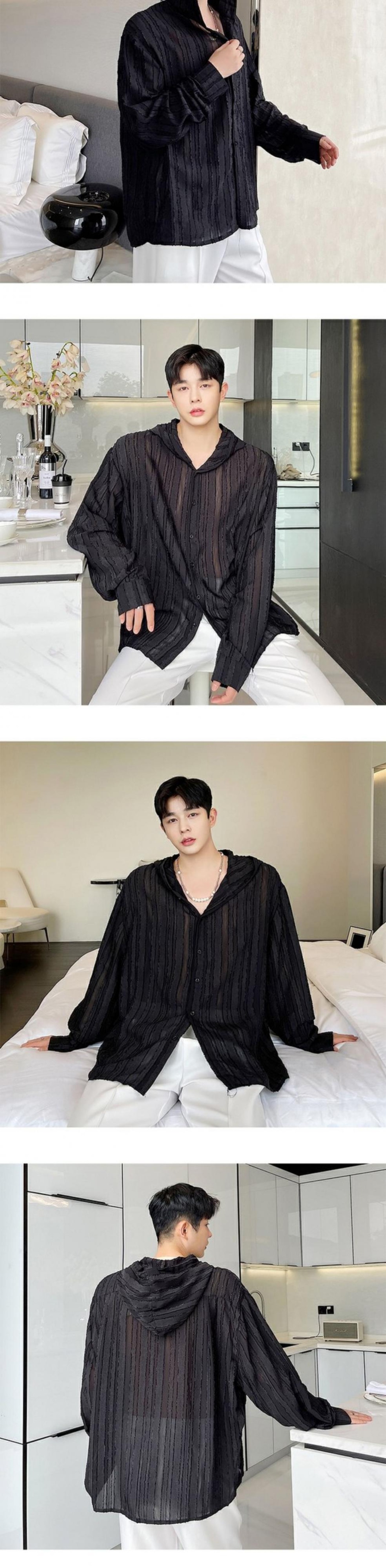 病みカッコイイ メンズファッション ストリートファッション ヒップホップ 個性的 裏原 サマーソリッド カラーフードシャツ ルーズスタイルジャケット ロング 夏物 ソリッドカラー ✝ おしゃれ メンズ 41308841676