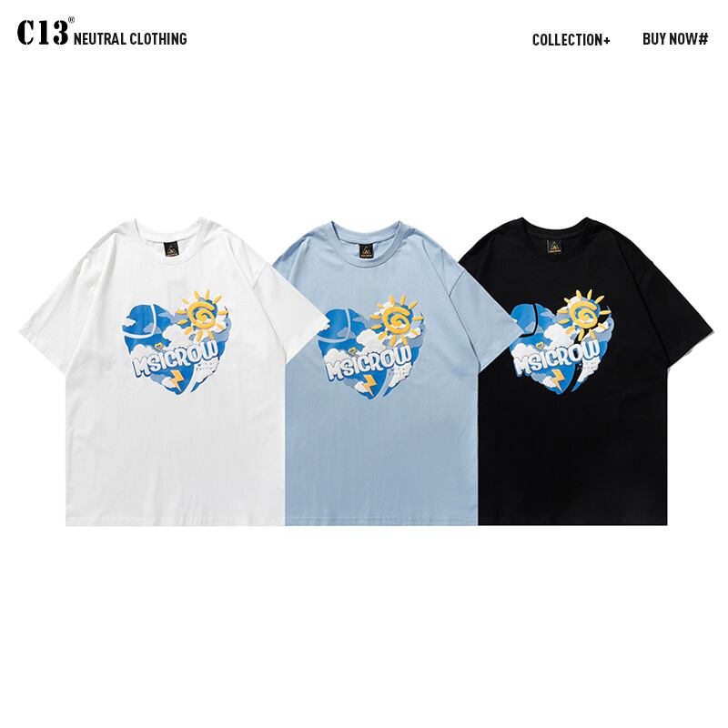 病みカッコイイ メンズファッション ストリートファッション ヒップホップ 個性的 裏原 サマーブルーホワイトプリントTシャツ ルーズ ストリート 夏物 ✝ メンズファッション27149130144