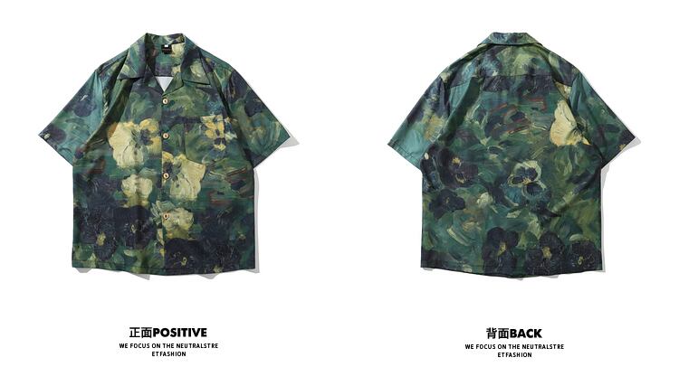 病みカッコイイ メンズファッション ストリートファッション ヒップホップ 個性的 裏原 スタンダードプリント柄シャツ ルーズカジュアルスタイルFlowerデザイン レトロ ストリート フラワーデザイン ✝ メンズファッション51261070201