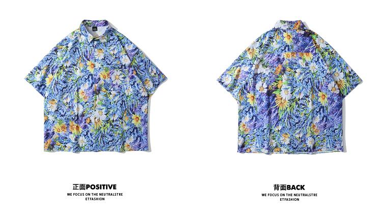 病みカッコイイ メンズファッション ストリートファッション ヒップホップ 個性的 裏原 サマーフローラルプリント柄シャツ ルーズFlowerデザイン ストリート 夏物 花柄 フラワーデザイン ✝ メンズファッション4597973806