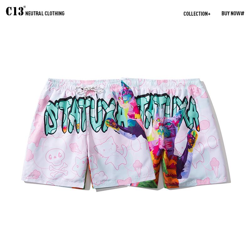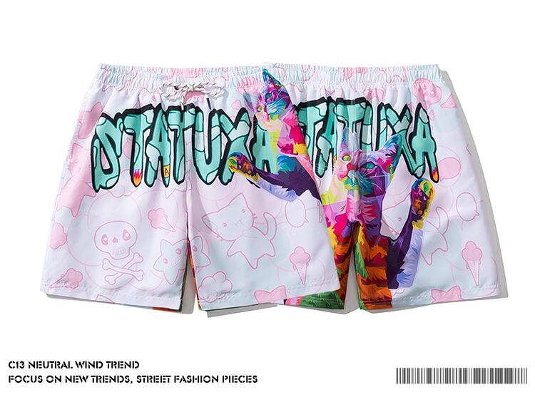 病みカッコイイ メンズファッション ストリートファッション ヒップホップ 個性的 裏原 サマースタンダードプリント柄スタイルショーツ ルーズカジュアルパンツ レトロ 夏物 ビーチ ブルマー ✝ メンズファッション5501367470