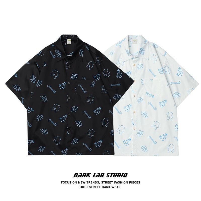 病みカッコイイ メンズファッション ストリートファッション ヒップホップ 個性的 裏原 サマープリント柄カジュアルシャツ レディースルーズ ストリート 夏物 ✝ メンズファッション37579595565