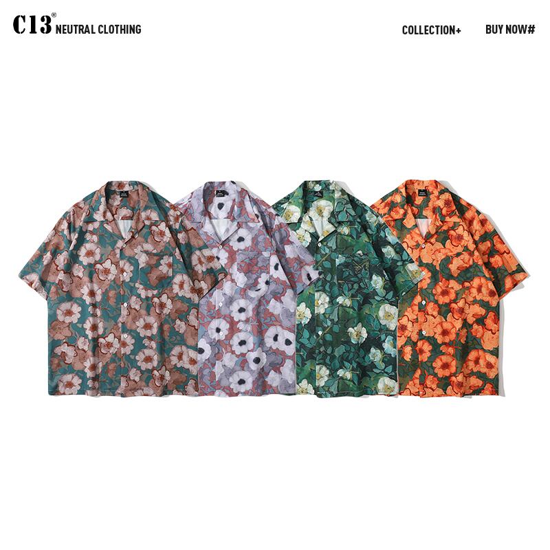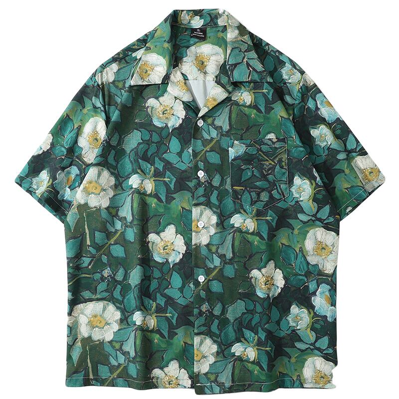 病みカッコイイ メンズファッション ストリートファッション ヒップホップ 個性的 裏原 サマースタンダードFlowerデザイン プリント柄シャツ スタイルルーズ レトロ ストリート 夏物 フラワーデザイン ✝ メンズファッション40975986011