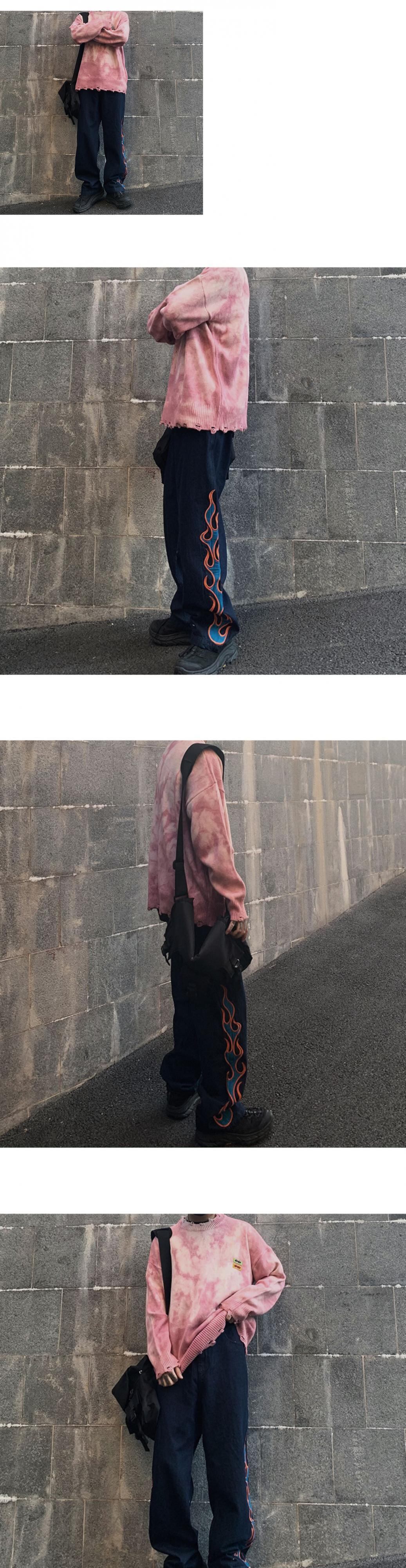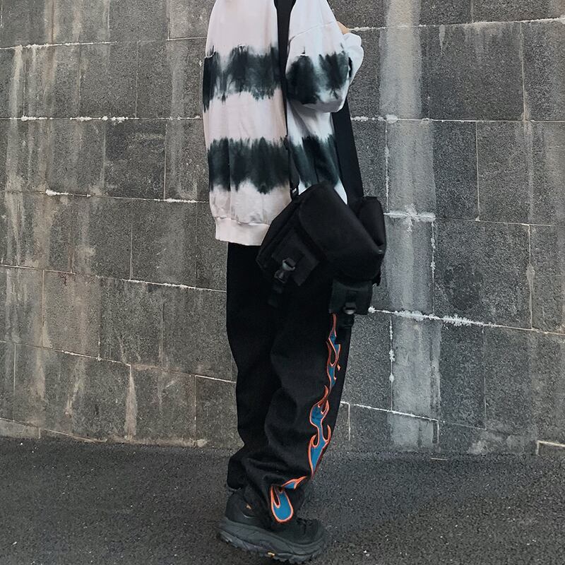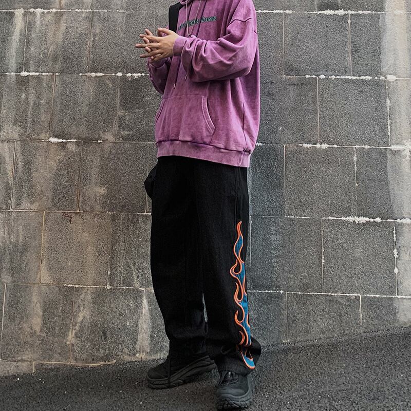 病みカッコイイ メンズファッション ストリートファッション ヒップホップ 個性的 裏原 ダーク刺繍カジュアルルーズジーンズ ストリート ✝ メンズファッション93130138020