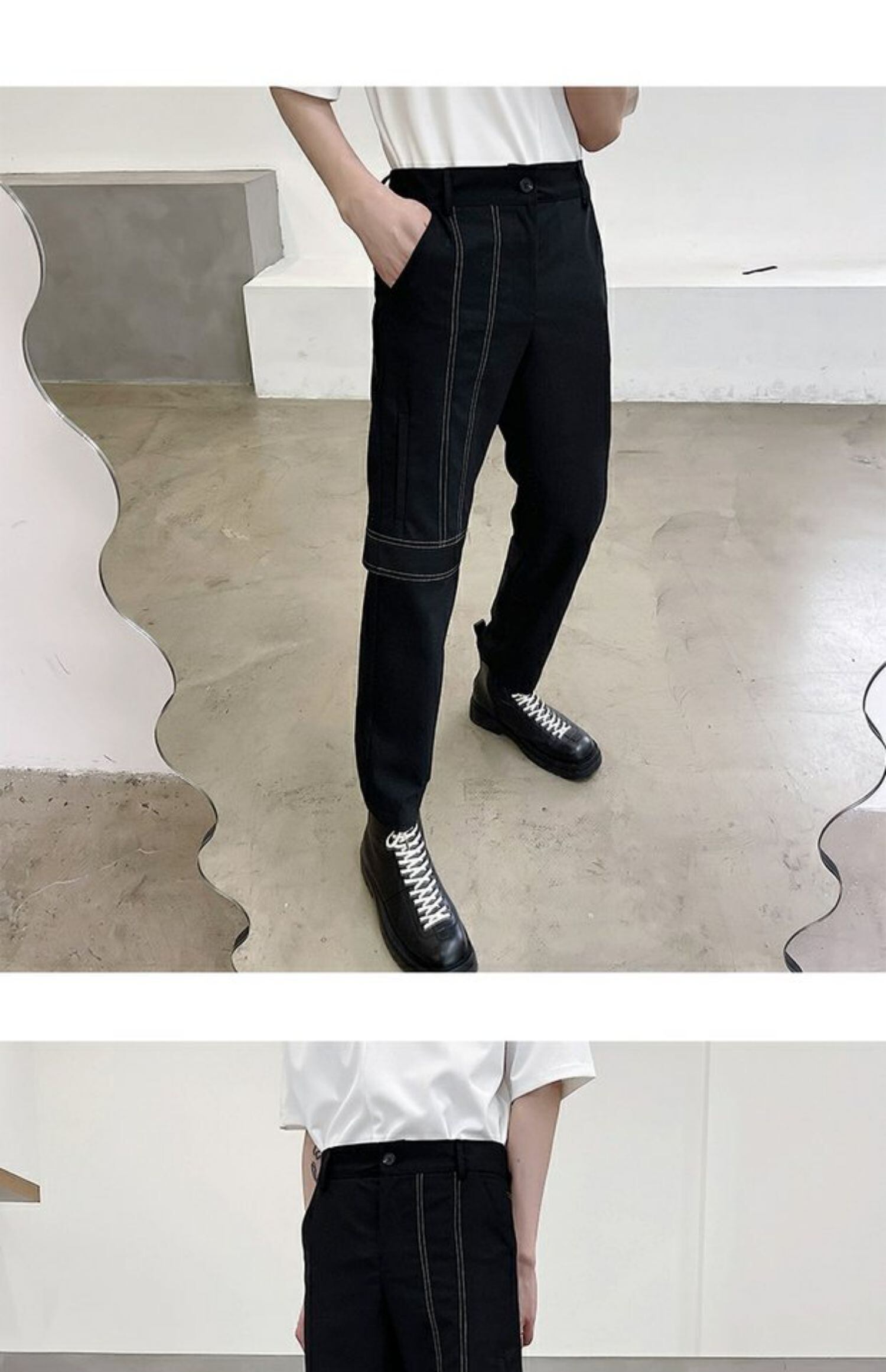 病みカッコイイ メンズファッション ストリートファッション ヒップホップ 個性的 裏原 アシンメトリーパンツ スリムカジュアルレッドストライプ ✝ おしゃれ メンズ 40867468182