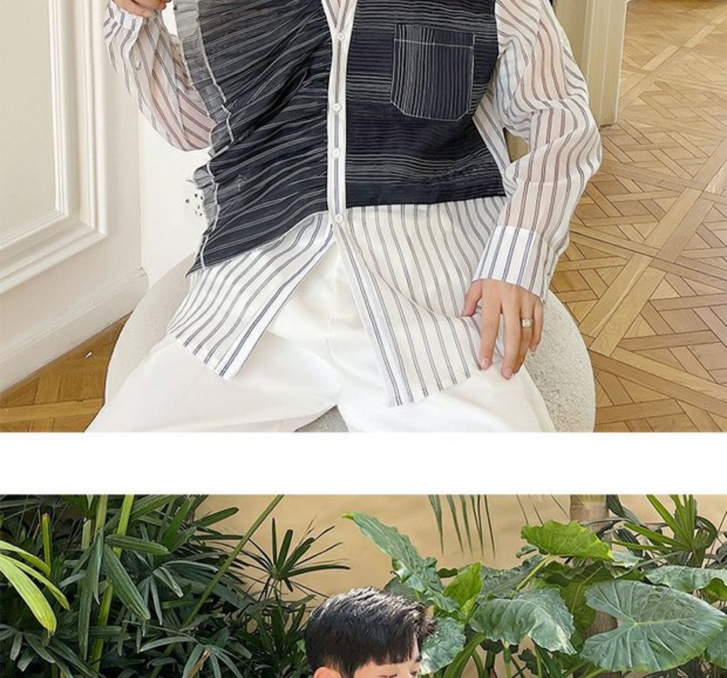 病みカッコイイ メンズファッション ストリートファッション ヒップホップ 個性的 裏原 サマーオータムカラーストライプシャツ ルーズ薄手シフォンレッド ロング 夏物 秋物 ✝ おしゃれ メンズ 57278034918