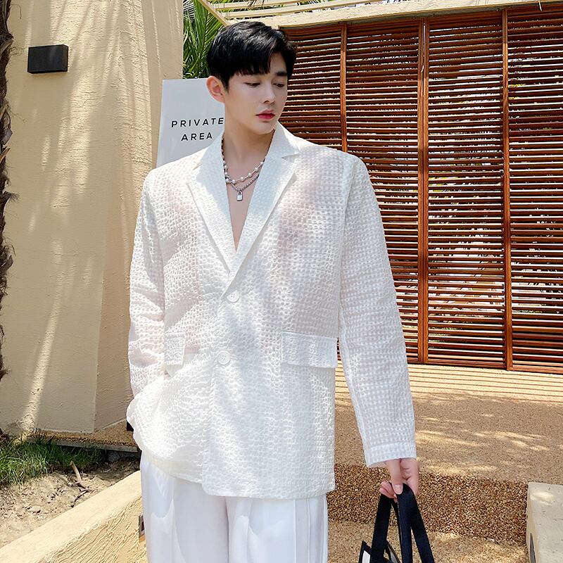 病みカッコイイ メンズファッション ストリートファッション ヒップホップ 個性的 裏原 サマーオータムミニマリストスタイルホワイトルーズジャケット 夏物 秋物 ピュア ✝ おしゃれ メンズ 77056085339