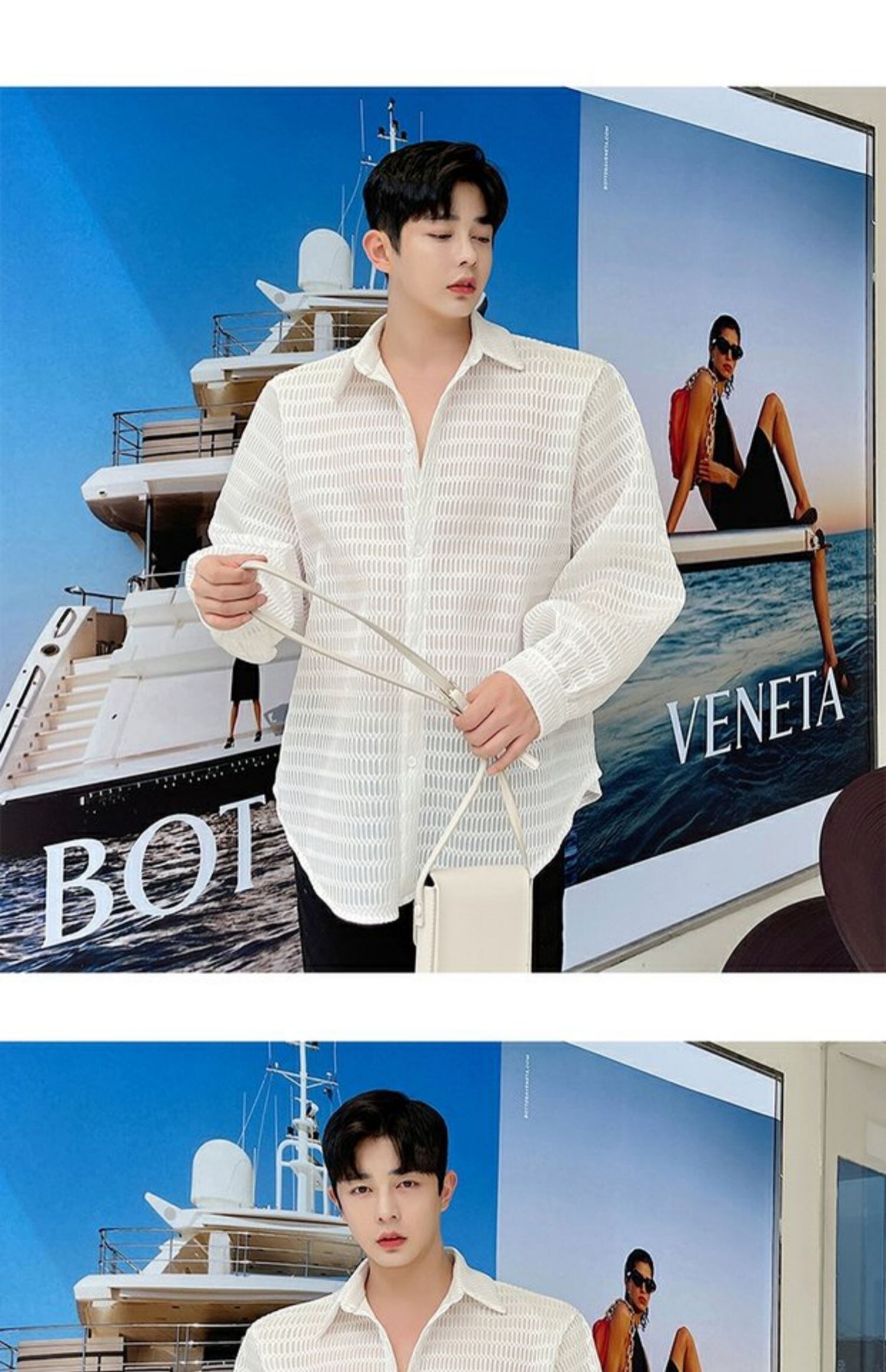 病みカッコイイ メンズファッション ストリートファッション ヒップホップ 個性的 裏原 オータムメッシュシャツ ルーズスタイルレッドカジュアル ロング 秋物 ✝ おしゃれ メンズ 71513714986
