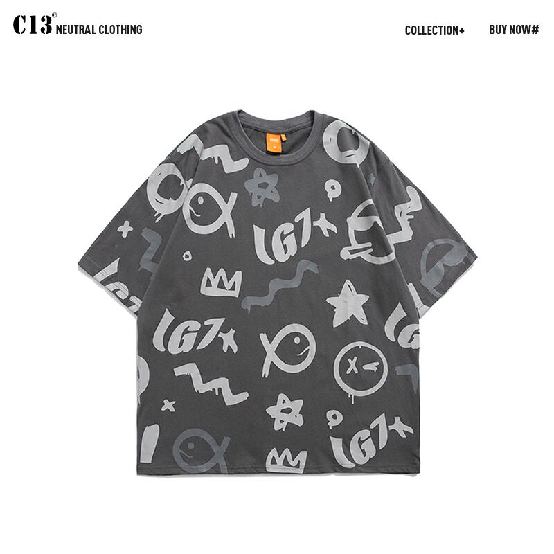 病みカッコイイ メンズファッション ストリートファッション ヒップホップ 個性的 裏原 サマープリント柄Tシャツ レディースルーズカジュアル コットン 夏物 ピュア ✝ メンズファッション32394614166