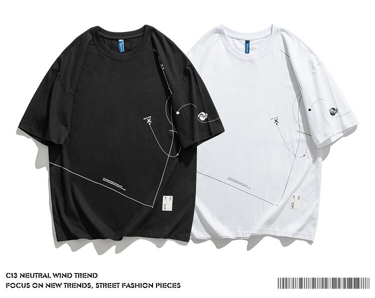 病みカッコイイ メンズファッション ストリートファッション ヒップホップ 個性的 裏原 サマーラインプリントTシャツ ルーズカジュアル ストリート 夏物 ✝ メンズファッション68296907645