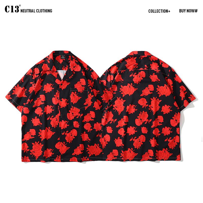 病みカッコイイ メンズファッション ストリートファッション ヒップホップ 個性的 裏原 サマースタンダードスタイルフローラルプリント柄シャツ ルーズカジュアルFlowerデザイン レトロ ストリート 夏物 花柄 フラワーデザイン ✝ メンズファッション92337051645
