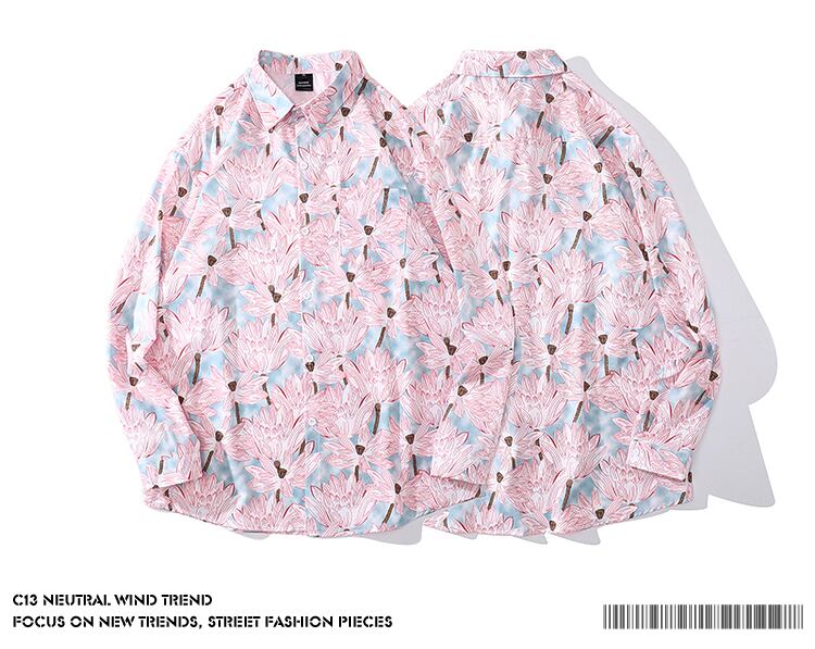 病みカッコイイ メンズファッション ストリートファッション ヒップホップ 個性的 裏原 スタンダードスタイルシャツ ルーズカジュアル薄手Flowerデザイン ロング レトロ ストリート フラワーデザイン ✝ メンズファッション92026016355