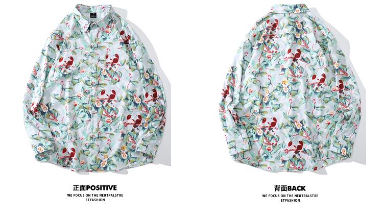 病みカッコイイ メンズファッション ストリートファッション ヒップホップ 個性的 裏原 スタンダードFlowerデザイン プリント柄シャツ レディースルーズカジュアルジャケット ロング レトロ ストリート フラワーデザイン ✝ メンズファッション63443328551