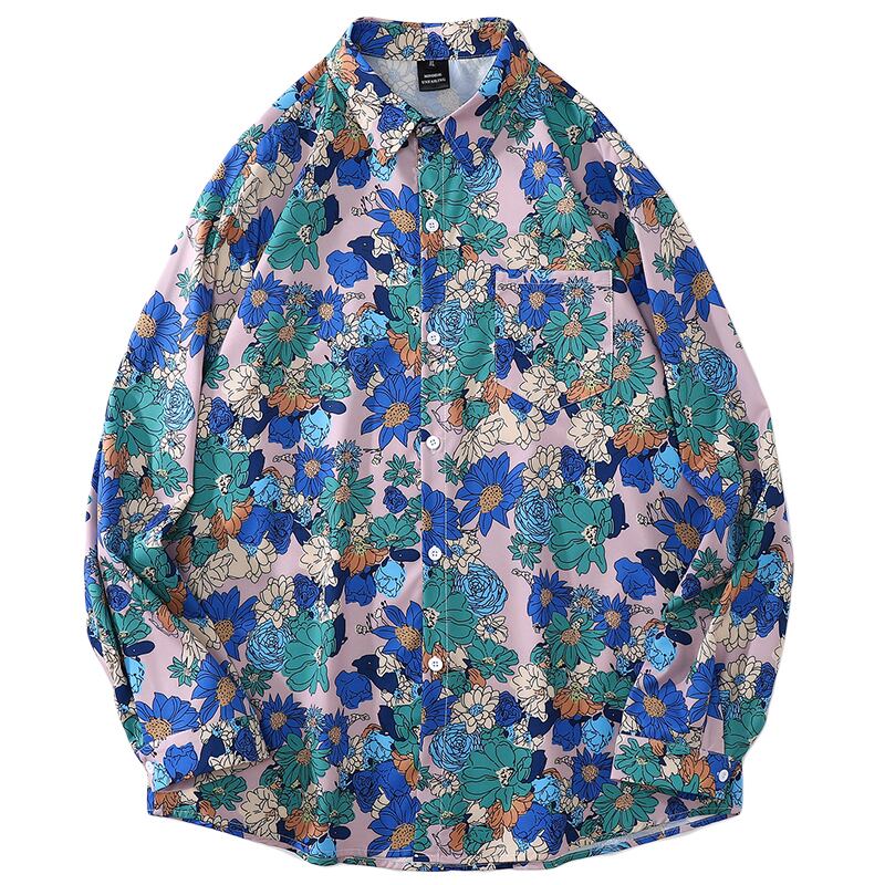 病みカッコイイ メンズファッション ストリートファッション ヒップホップ 個性的 裏原 スタンダードフローラルプリント柄スタイルFlowerデザイン シャツ ルーズカジュアル ロング レトロ 花柄 フラワーデザイン ✝ メンズファッション83406353360
