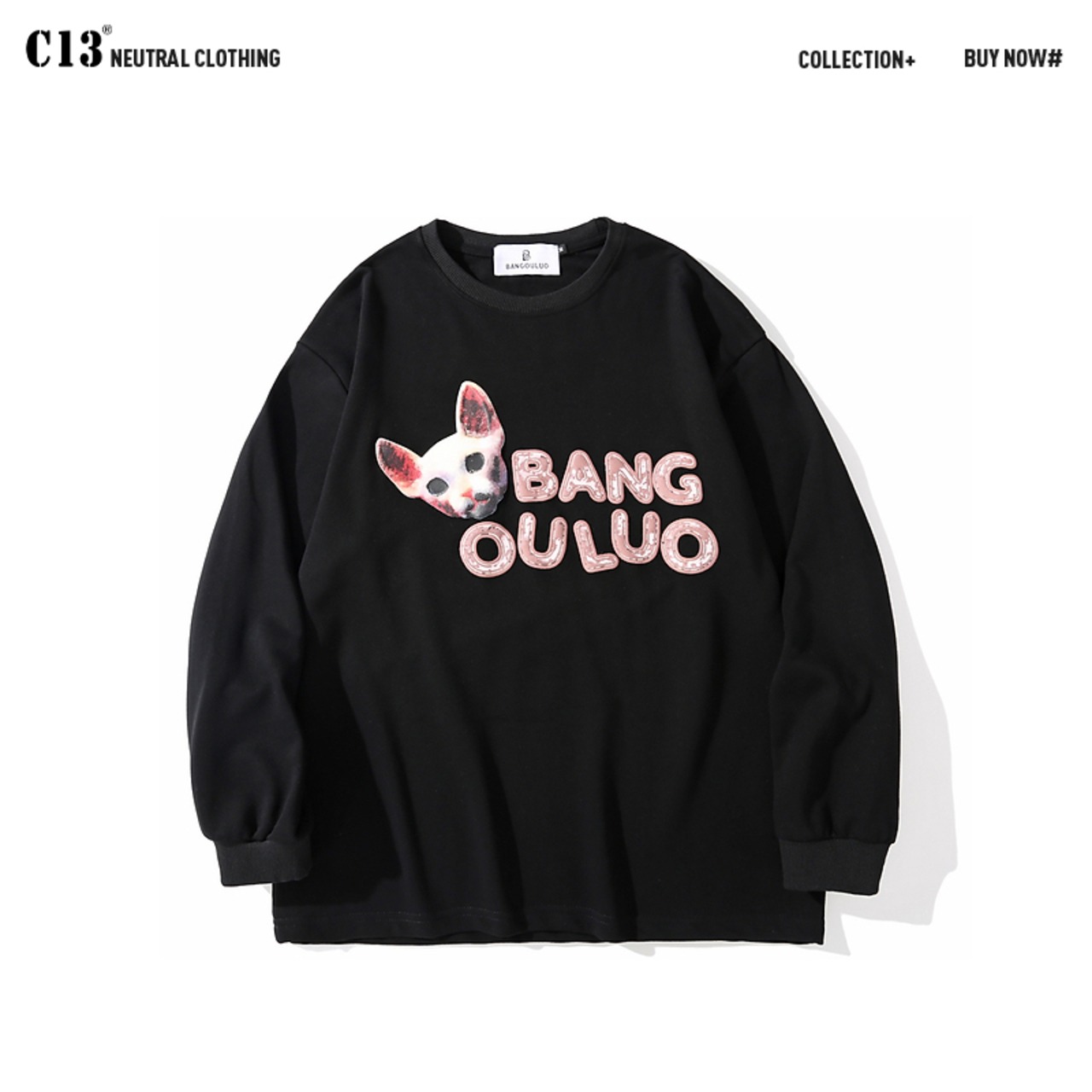 病みカッコイイ メンズファッション ストリートファッション ヒップホップ 個性的 裏原 オータムプリントラウンドネックプルオーバー セーター レディースルーズシャツ ストリート 秋物 Oネック ✝ メンズファッション35363200358