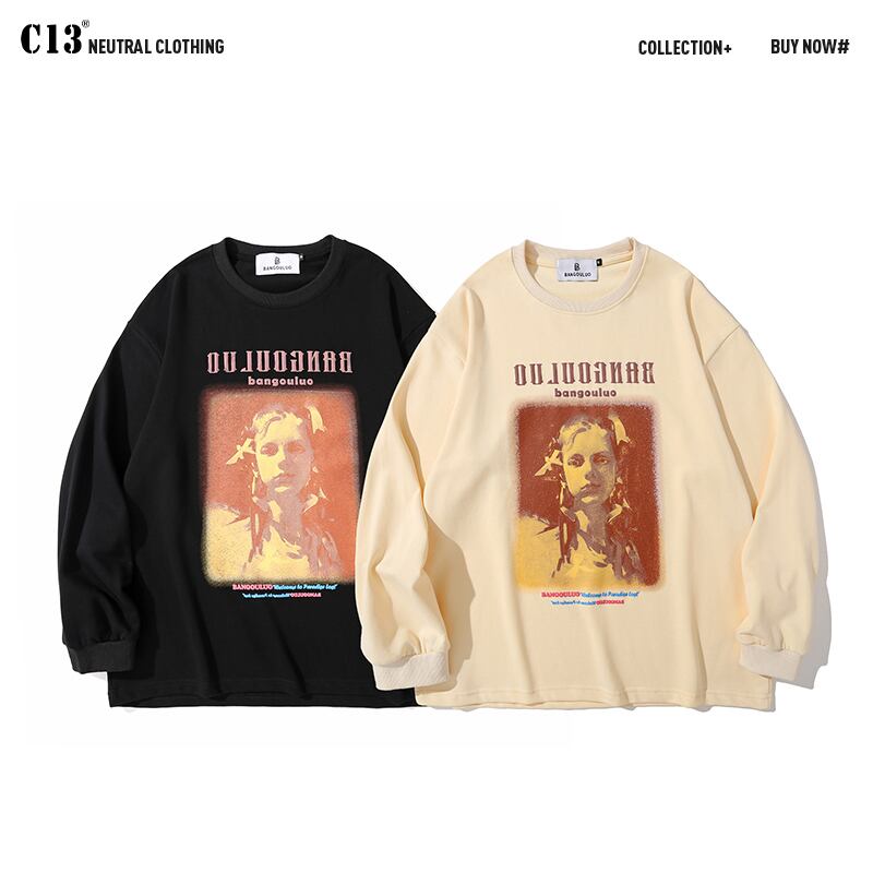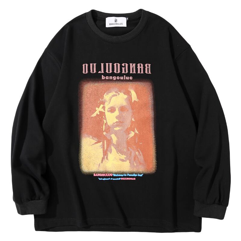 病みカッコイイ メンズファッション ストリートファッション ヒップホップ 個性的 裏原 スタンダードプリントラウンドネックセーター レディースルーズプルオーバー ロング レトロ Oネック ✝ メンズファッション35392002758