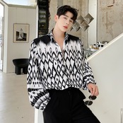 病みカッコイイ メンズファッション ストリートファッション ヒップホップ 個性的 裏原 オータム格子柄シャツ ルーズレッドプリント ロング 秋物 ✝ おしゃれ メンズ 61615309138