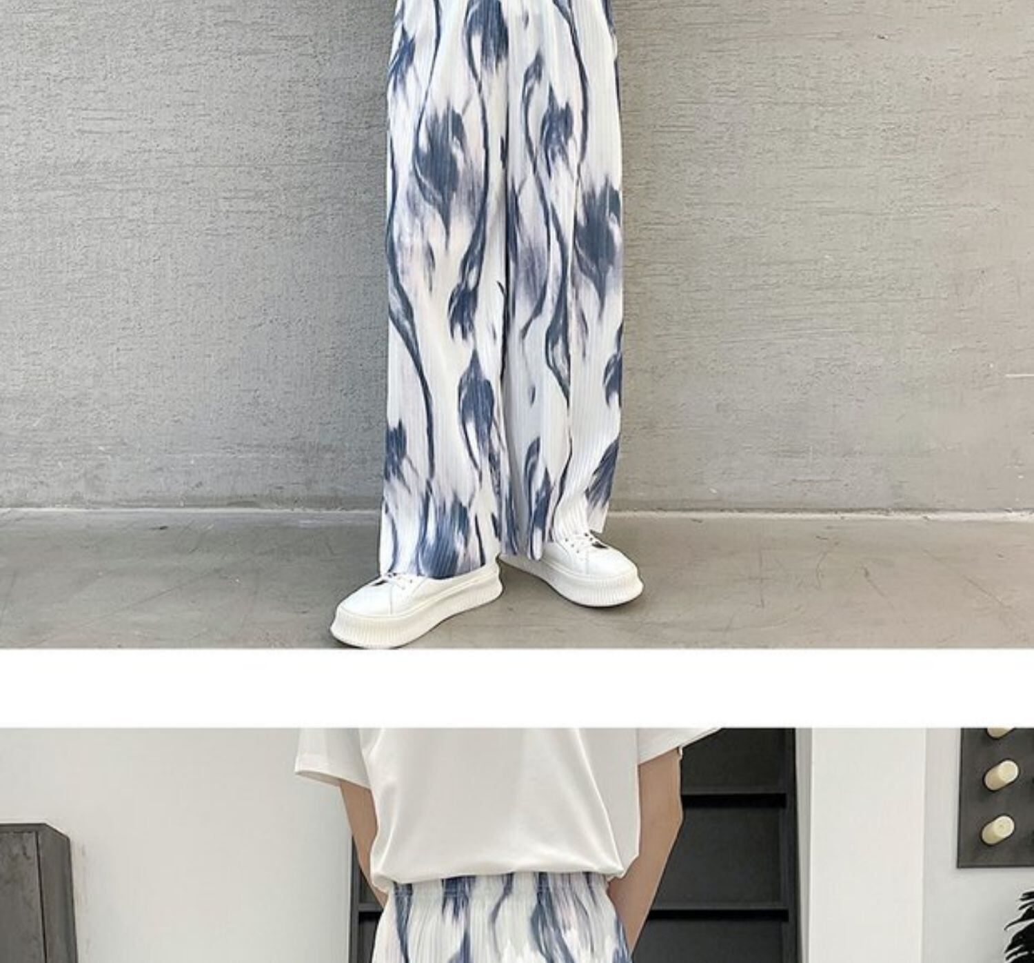 病みカッコイイ メンズファッション ストリートファッション ヒップホップ 個性的 裏原 オータムスタンダードプリントカジュアルパンツ ルーズレッドプリーツ レトロ 秋物 シルク ✝ おしゃれ メンズ 34519428766