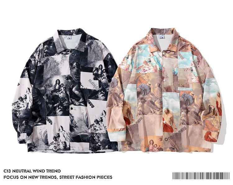 病みカッコイイ メンズファッション ストリートファッション ヒップホップ 個性的 裏原 スタンダードプリントシャツ ルーズカジュアルジャケット ロング レトロ ストリート ヨーロピアン ✝ メンズファッション63461067742