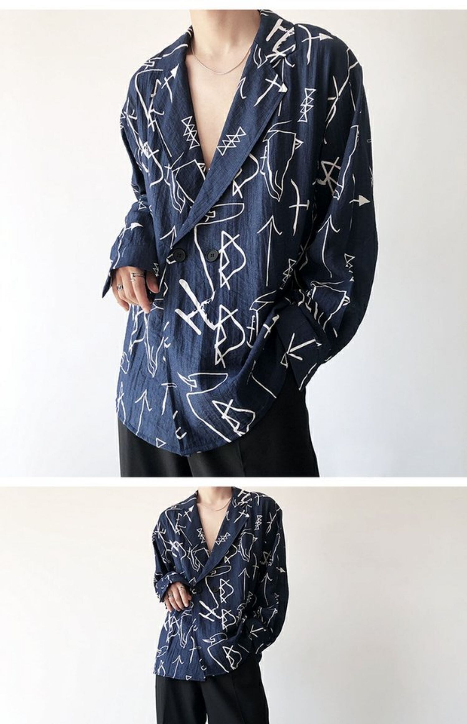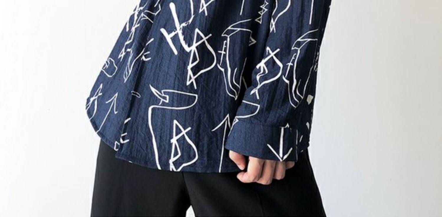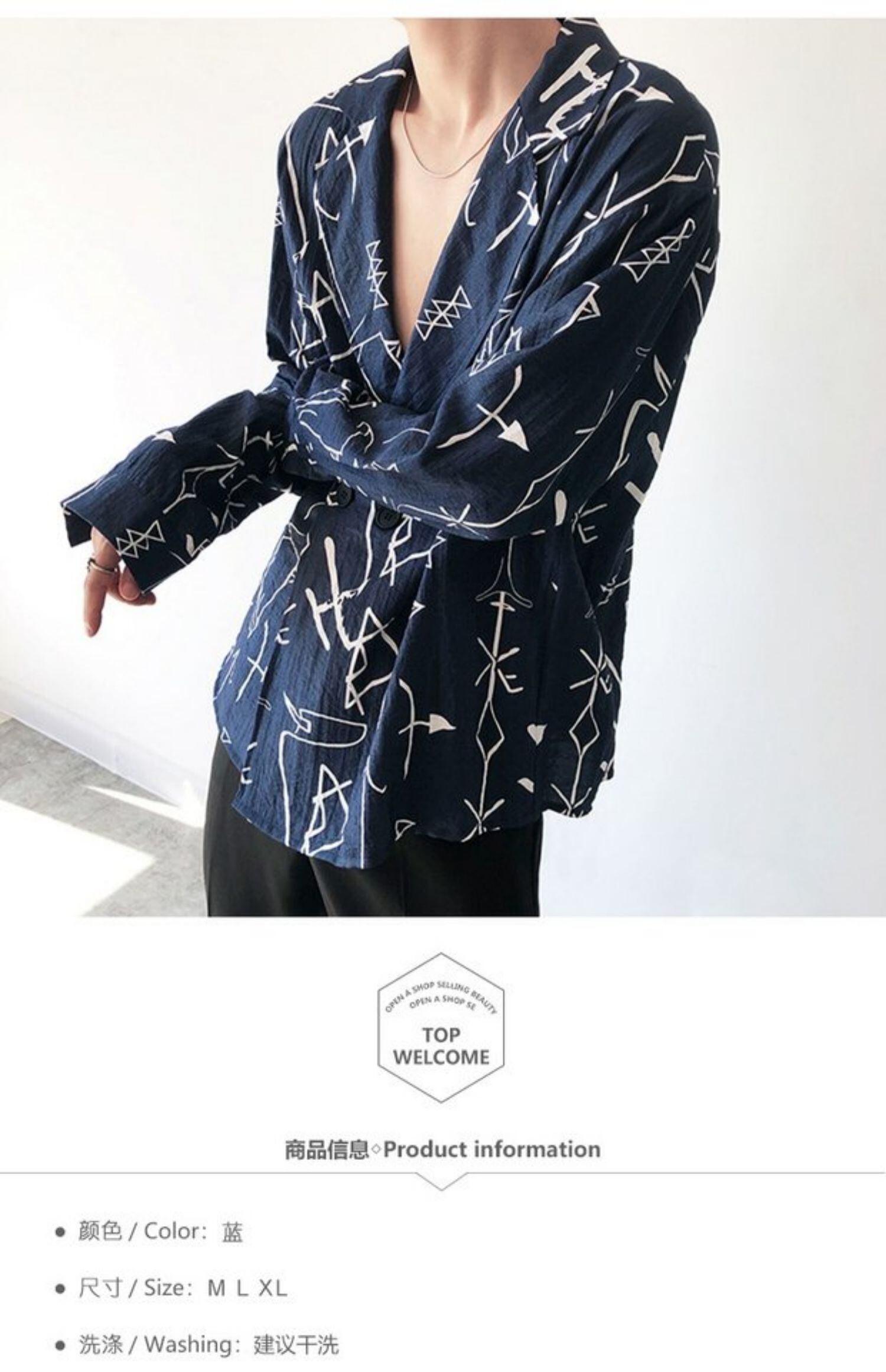 病みカッコイイ メンズファッション ストリートファッション ヒップホップ 個性的 裏原 オータムプリントシャツ ルーズスタンダードカラー ロング レトロ 秋物 ✝ おしゃれ メンズ 14235266111