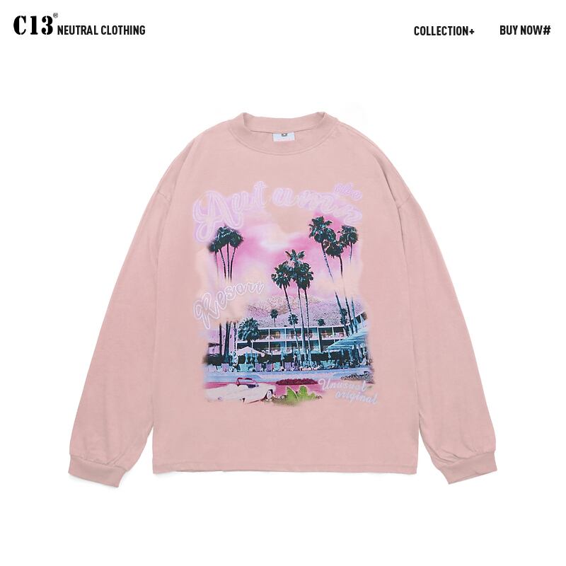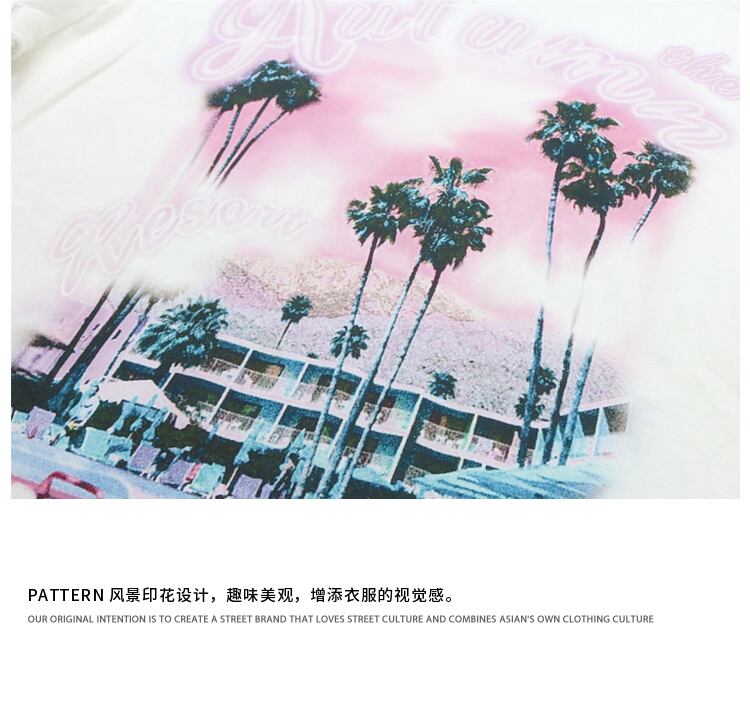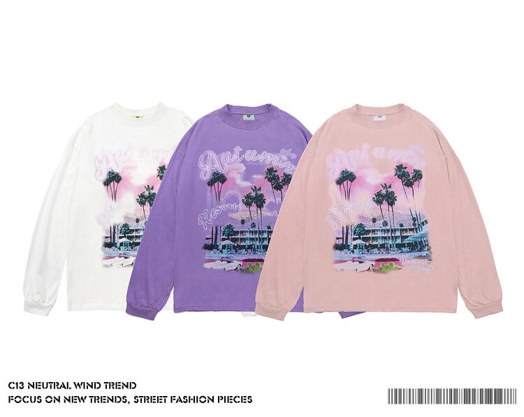 病みカッコイイ メンズファッション ストリートファッション ヒップホップ 個性的 裏原 スタンダードプリントラウンドネックTシャツ ルーズカジュアル薄手セーター ロング レトロ ストリート Oネック ヨーロピアン ✝ メンズファッション56537803843