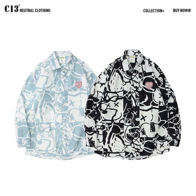 病みカッコイイ メンズファッション ストリートファッション ヒップホップ 個性的 裏原 プリント柄シャツ レディースルーズジャケット ロング ストリート ✝ メンズファッション52829396839