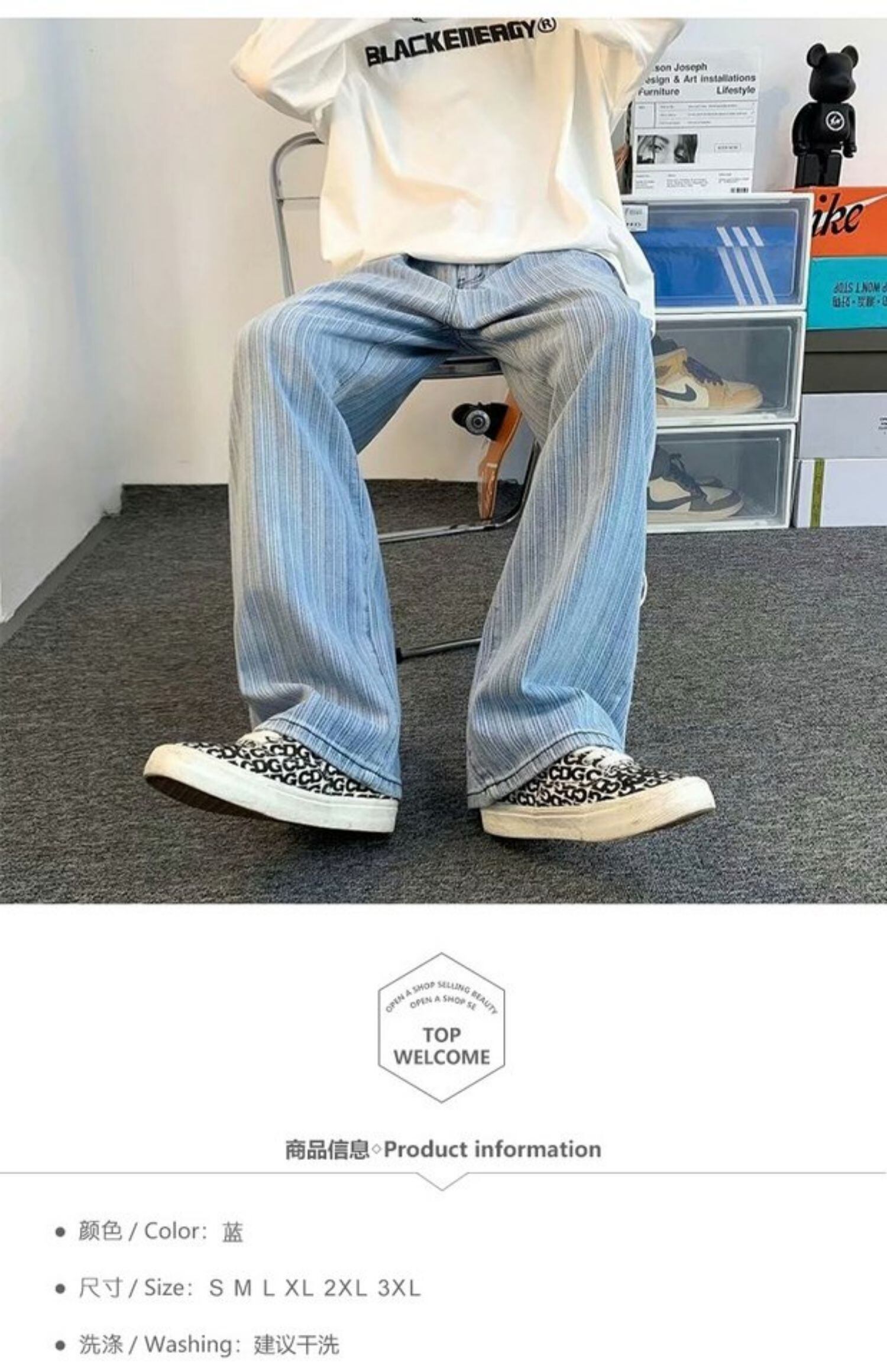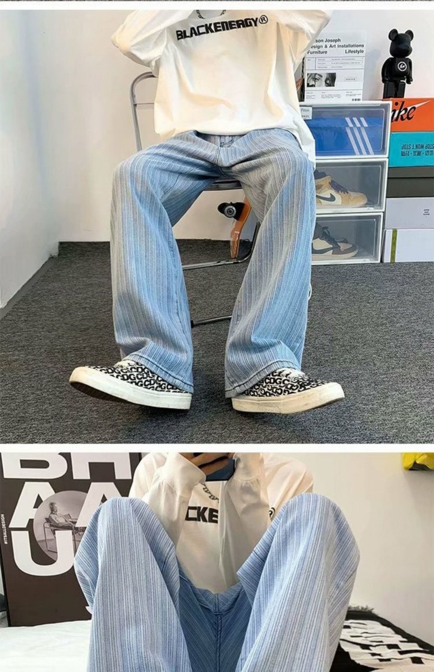 病みカッコイイ メンズファッション ストリートファッション ヒップホップ 個性的 裏原 ストライプジーンズ ルーズカジュアルパンツ スプリングオータム 春物 秋物 ✝ おしゃれ メンズ 90654698185