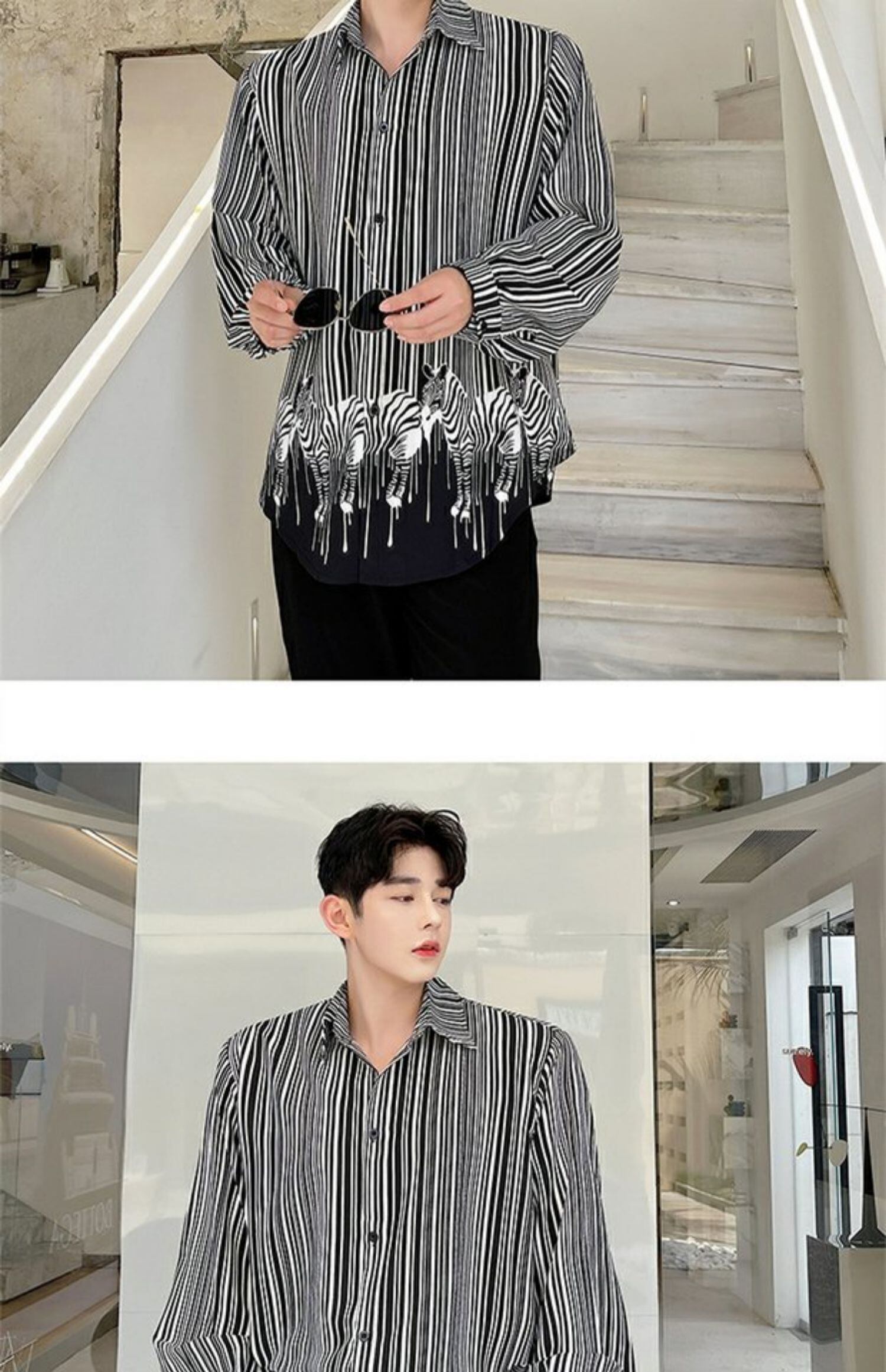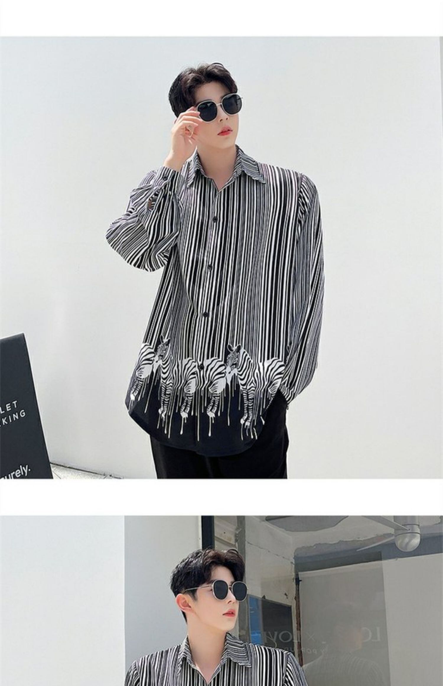 病みカッコイイ メンズファッション ストリートファッション ヒップホップ 個性的 裏原 オータムストライプシャツ ルーズカジュアル 秋物 ドレス ✝ おしゃれ メンズ 53264303907