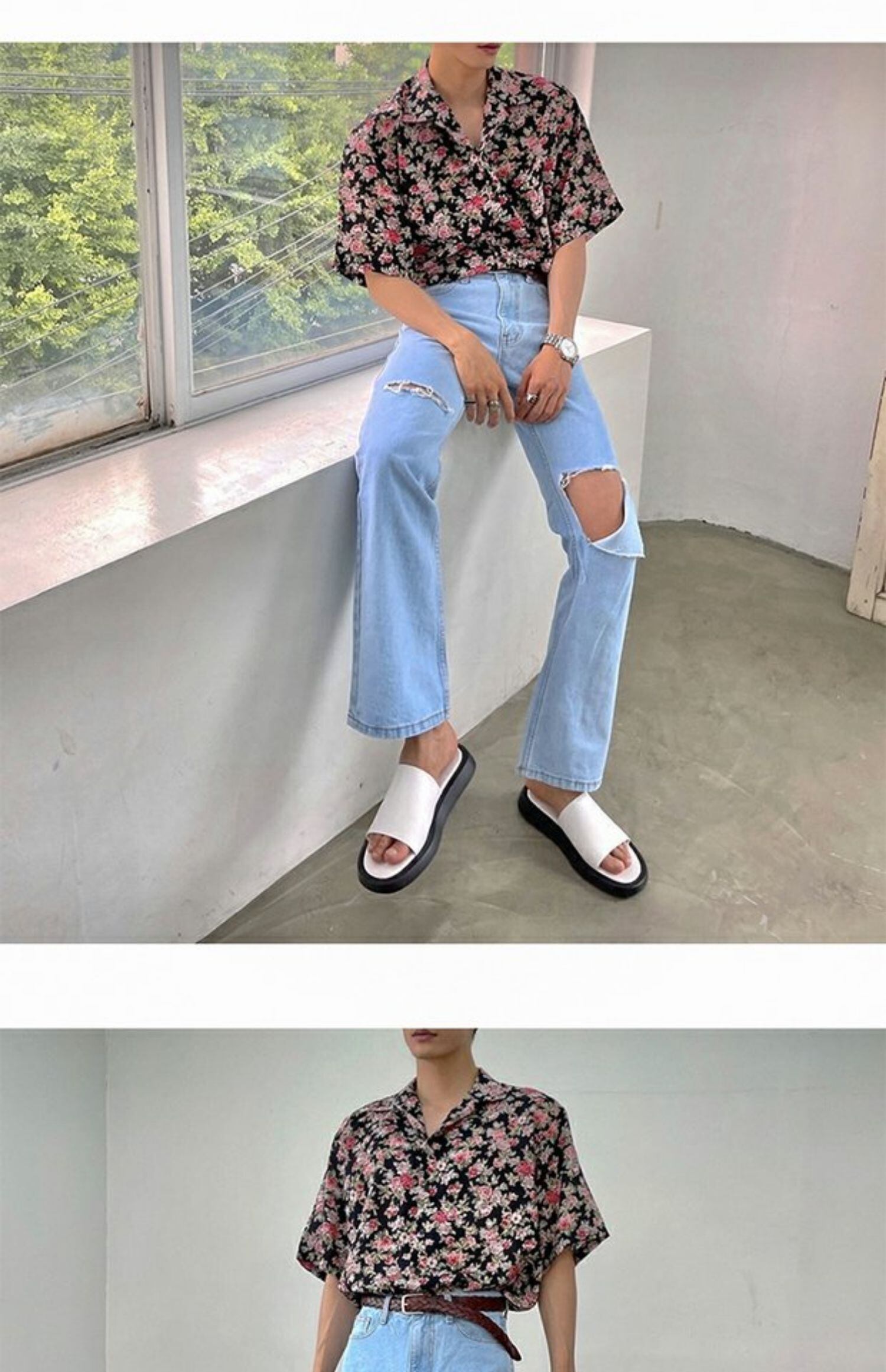 病みカッコイイ メンズファッション ストリートファッション ヒップホップ 個性的 裏原 サマーフローラルシャツ ルーズプリント柄 夏物 花柄 ✝ おしゃれ メンズ 53500392056