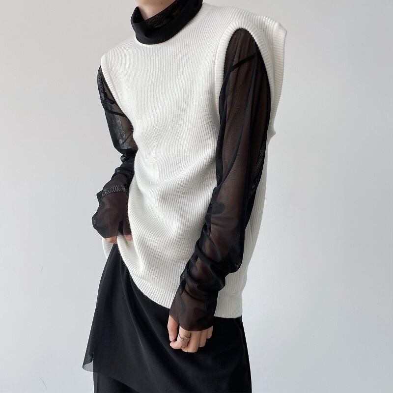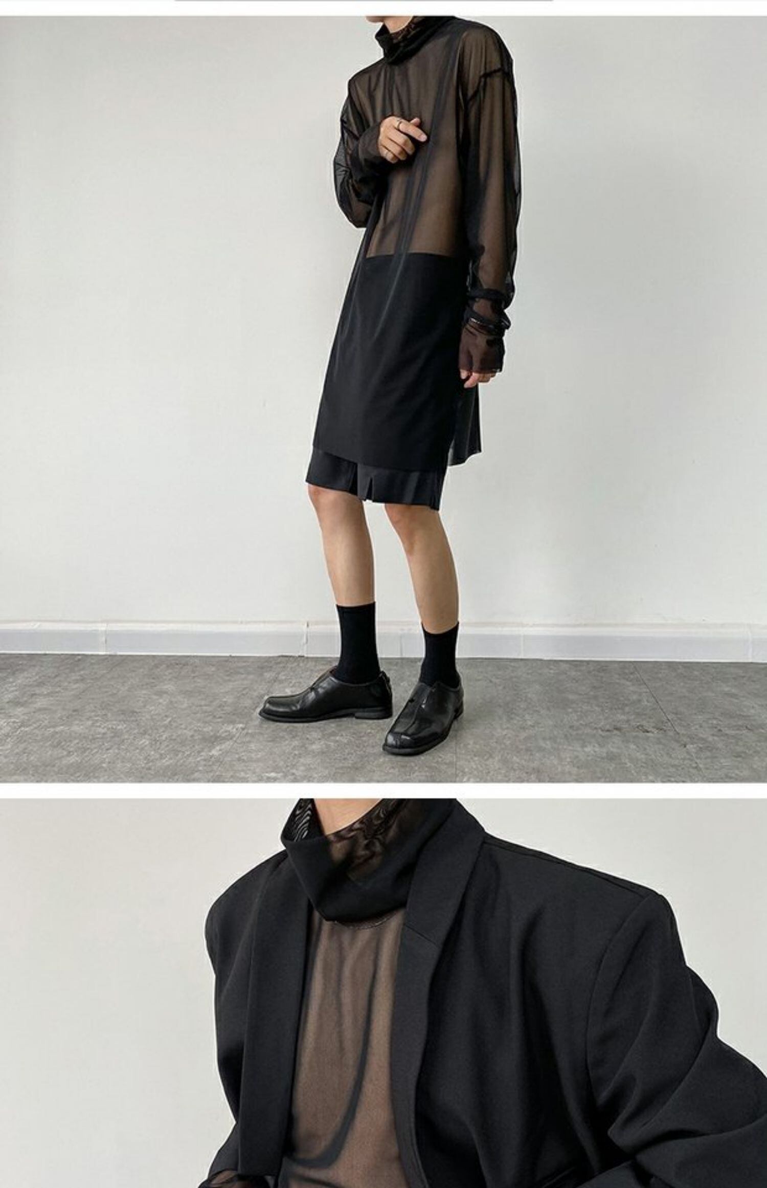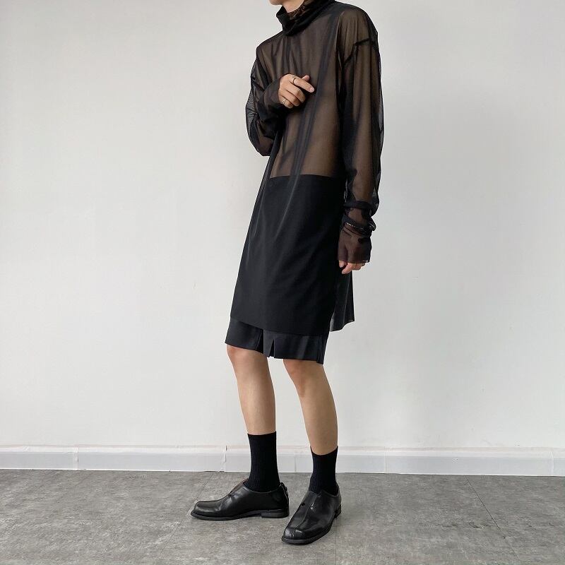 病みカッコイイ メンズファッション ストリートファッション ヒップホップ 個性的 裏原 サマーオータムメッシュロングTシャツ シャツ ルーズ 夏物 秋物 ✝ おしゃれ メンズ 29159224089