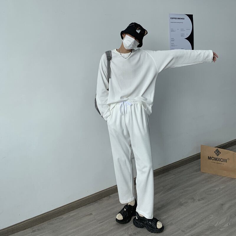 病みカッコイイ メンズファッション ストリートファッション ヒップホップ 個性的 裏原 ルーズソリッド カラーシャツ ニットセーター パンツ ロング ストリート ソリッドカラー ✝ おしゃれ メンズ 34443094166
