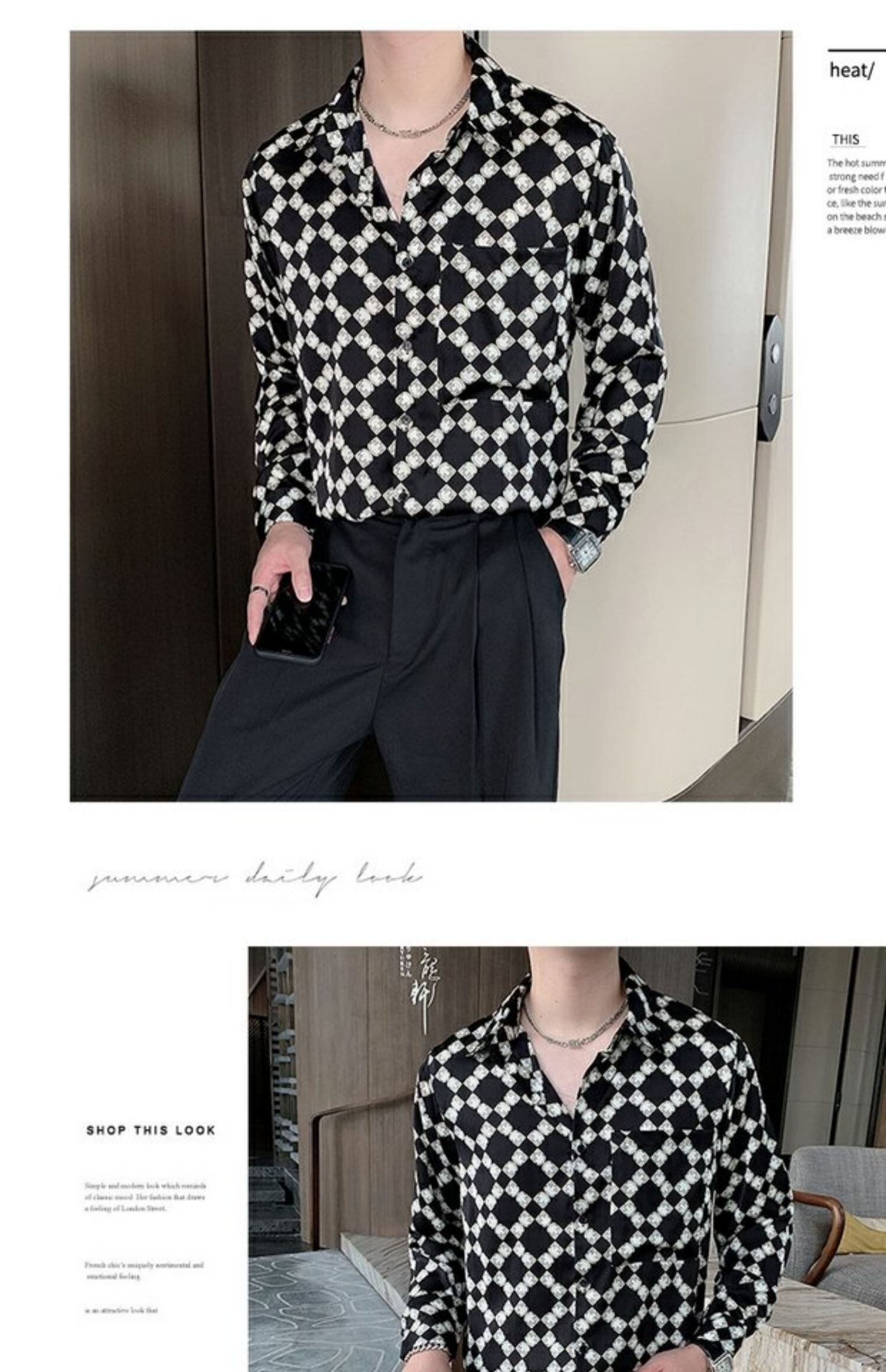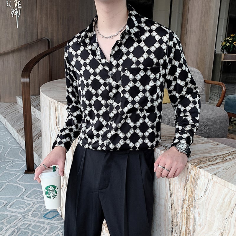 病みカッコイイ メンズファッション ストリートファッション ヒップホップ 個性的 裏原 オータム格子柄シャツ ロング 秋物 ドレス ✝ おしゃれ メンズ 94316991618