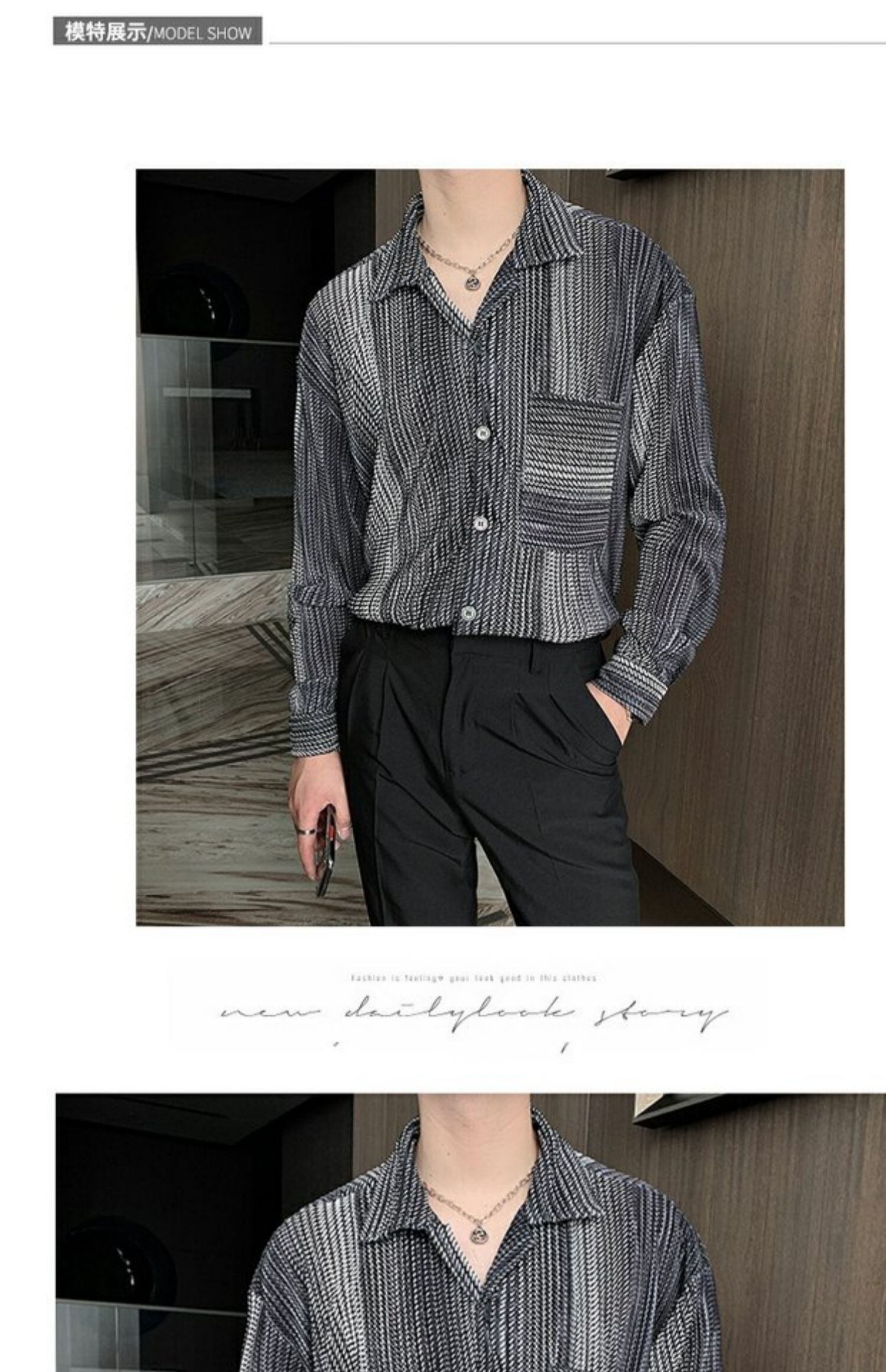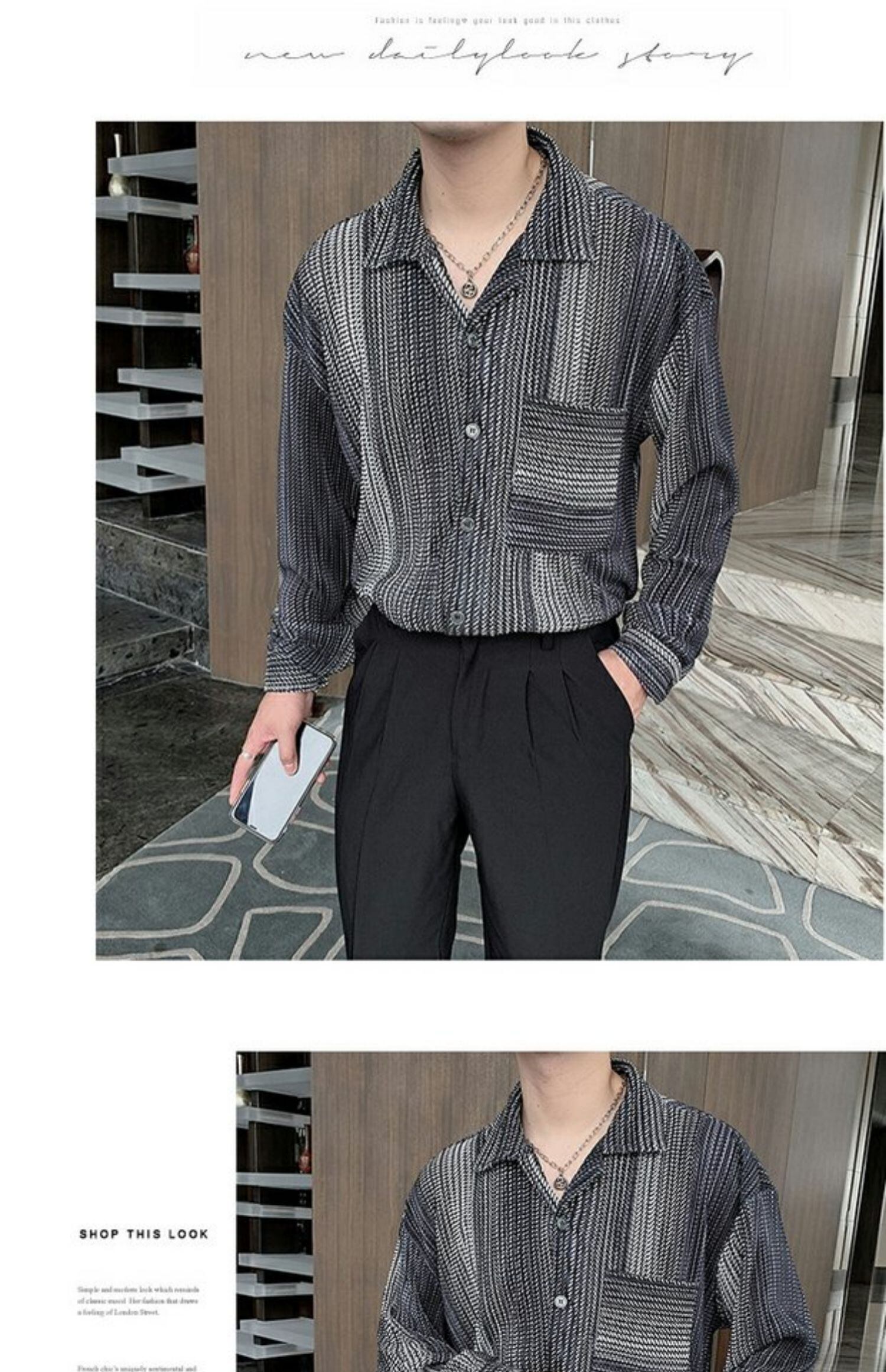 病みカッコイイ メンズファッション ストリートファッション ヒップホップ 個性的 裏原 オータムスタンダードスタイルカラーストライプシャツ ルーズ ロング レトロ 秋物 ドレス ✝ おしゃれ メンズ 9139958590