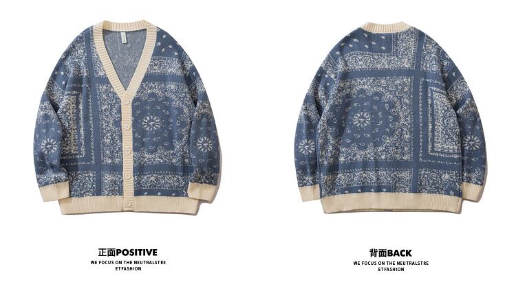 病みカッコイイ メンズファッション ストリートファッション ヒップホップ 個性的 裏原 オータムスタンダードエスニックFlowerデザイン セーター ジャケット ルーズカーディガン レトロ 秋物 フラワーデザイン ✝ メンズファッション30510544177