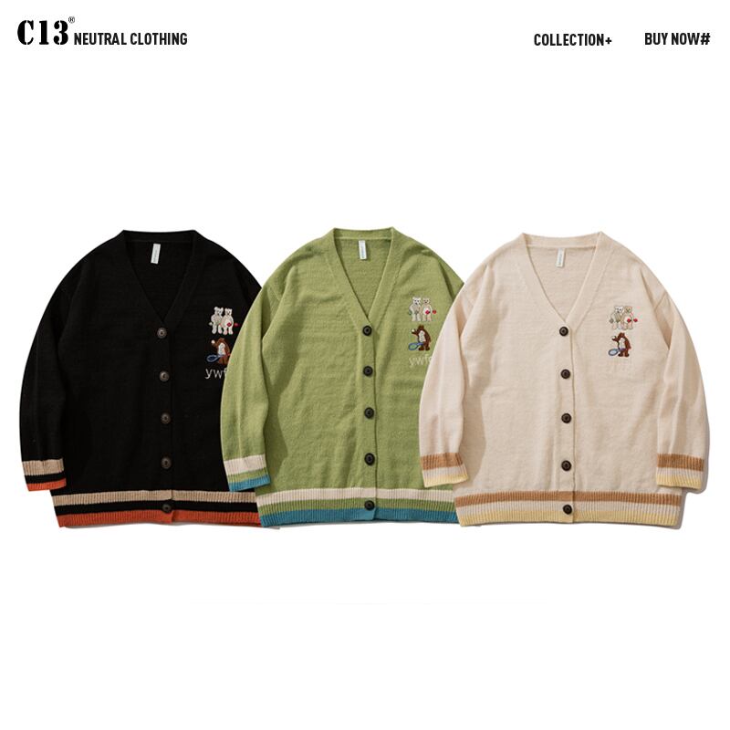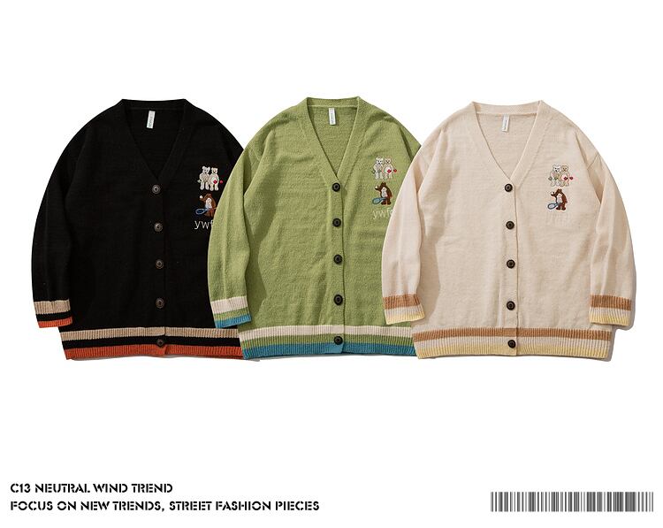 病みカッコイイ メンズファッション ストリートファッション ヒップホップ 個性的 裏原 スタンダードVネックセーター ジャケット レディースルーズ レッド レトロ 刺繍 ✝ メンズファッション44268889380