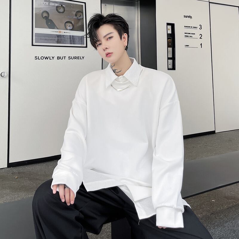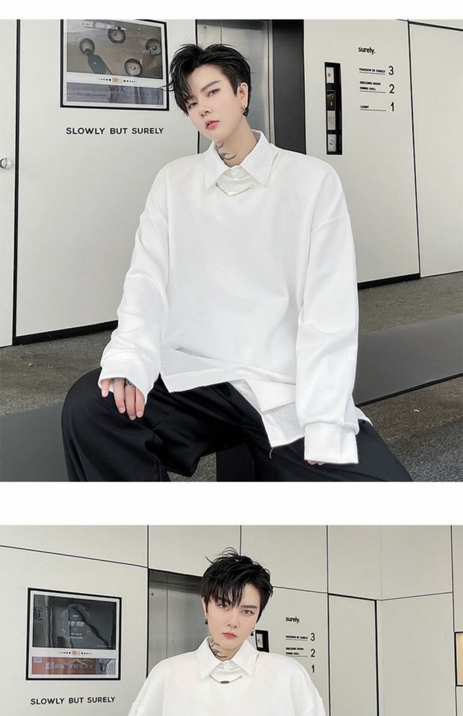 病みカッコイイ メンズファッション ストリートファッション ヒップホップ 個性的 裏原 オータムスタイルプルオーバー セーター ルーズシャツ ロング 秋物 ✝ おしゃれ メンズ 56546519046