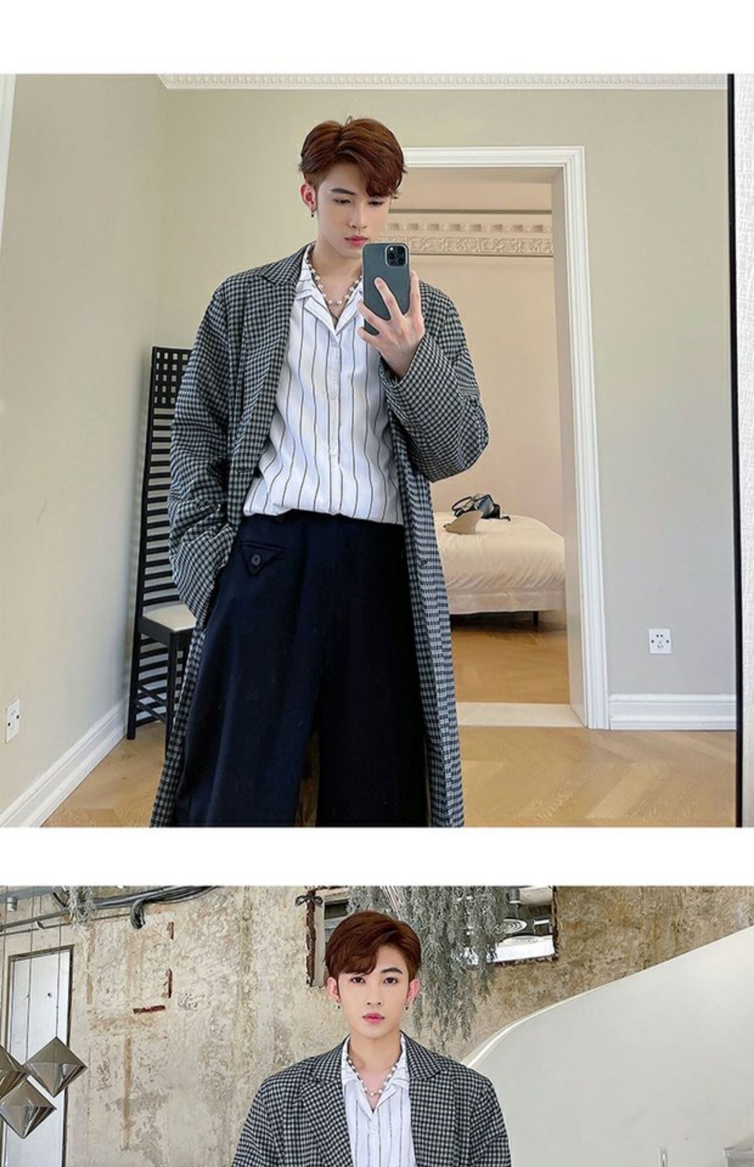 病みカッコイイ メンズファッション ストリートファッション ヒップホップ 個性的 裏原 スタイルロング格子柄ルーズカジュアルコート ジャケット スプリングオータム 春物 秋物 ✝ おしゃれ メンズ 97502098464