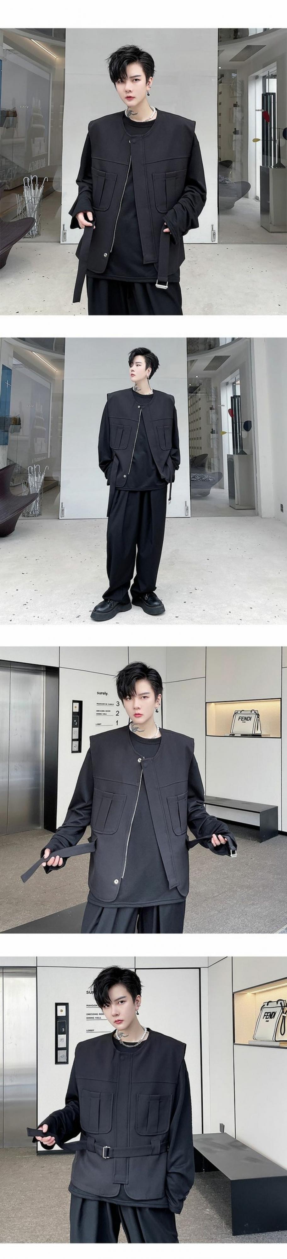 病みカッコイイ メンズファッション ストリートファッション ヒップホップ 個性的 裏原 ノースリーブジャケット ストリート ✝ おしゃれ メンズ 65954048945
