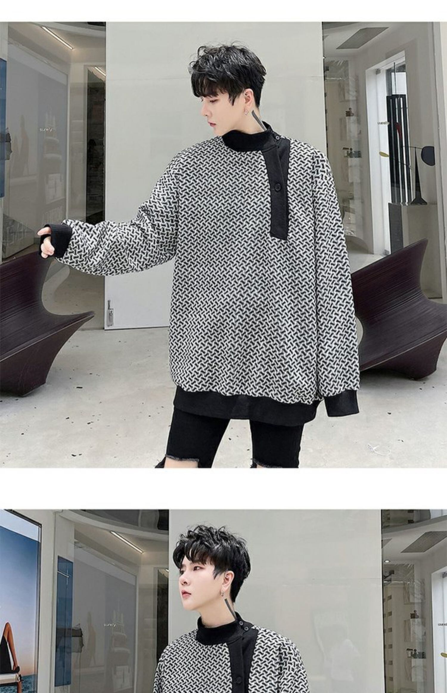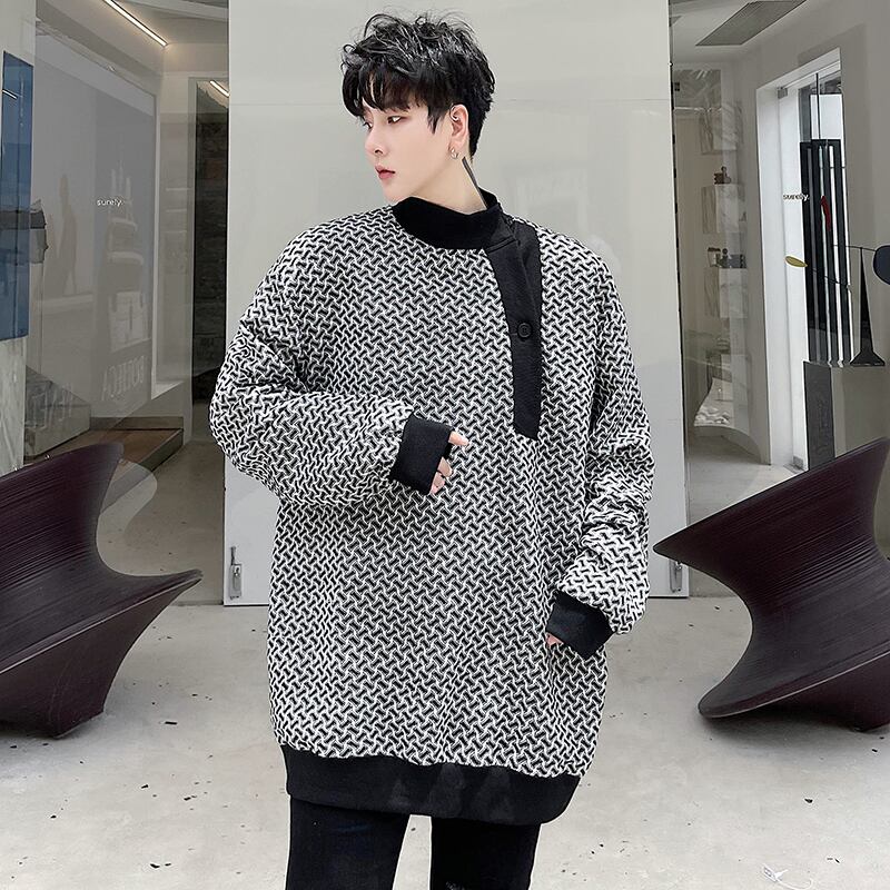 病みカッコイイ メンズファッション ストリートファッション ヒップホップ 個性的 裏原 オータムセーター ルーズプリント柄プルオーバー ジャケット 秋物 ✝ おしゃれ メンズ 84803568880