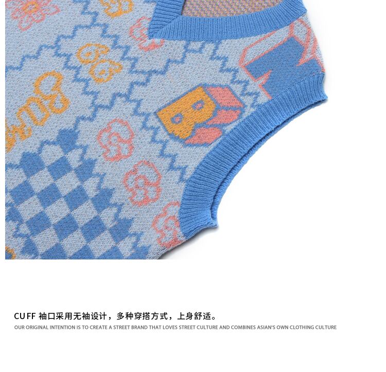 病みカッコイイ メンズファッション ストリートファッション ヒップホップ 個性的 裏原 スタイルジャカードカラーVネックセーター レディースルーズカジュアルニット かわいい ✝ メンズファッション38688298125