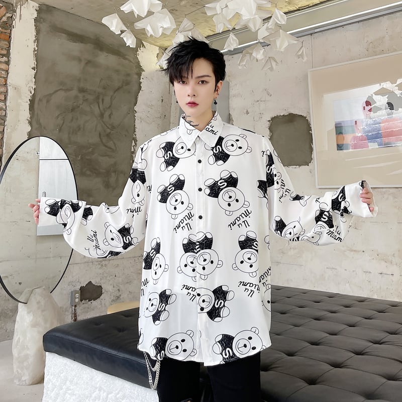 病みカッコイイ メンズファッション ストリートファッション ヒップホップ 個性的 裏原 オータムスタンダードプリント柄シャツ ルーズFlowerデザイン レトロ 秋物 フラワーデザイン ✝ おしゃれ メンズ 29408961445
