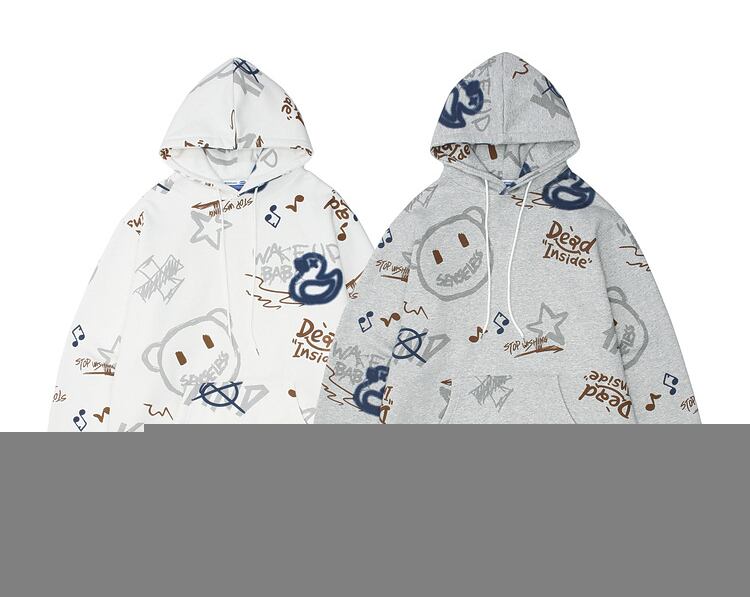 病みカッコイイ メンズファッション ストリートファッション ヒップホップ 個性的 裏原 プリント柄フードセーター レディーススタンダードルーズベルベットプルオーバー トップス レトロ ✝ メンズファッション28555455853