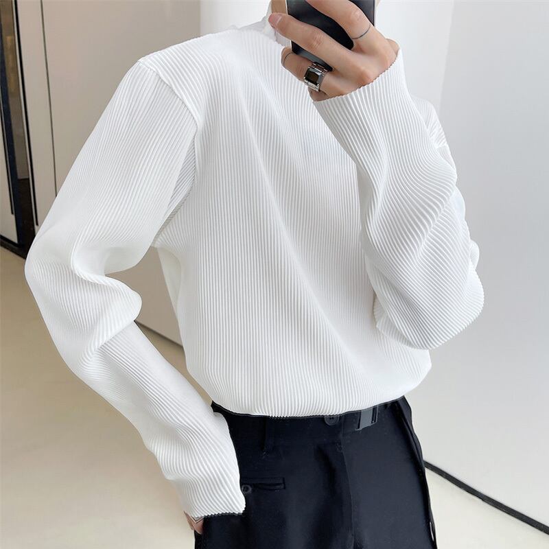 病みカッコイイ メンズファッション ストリートファッション ヒップホップ 個性的 裏原 カラーソリッド Tシャツ シャツ プリーツトップス ロング ソリッドカラー ✝ おしゃれ メンズ 36269400618