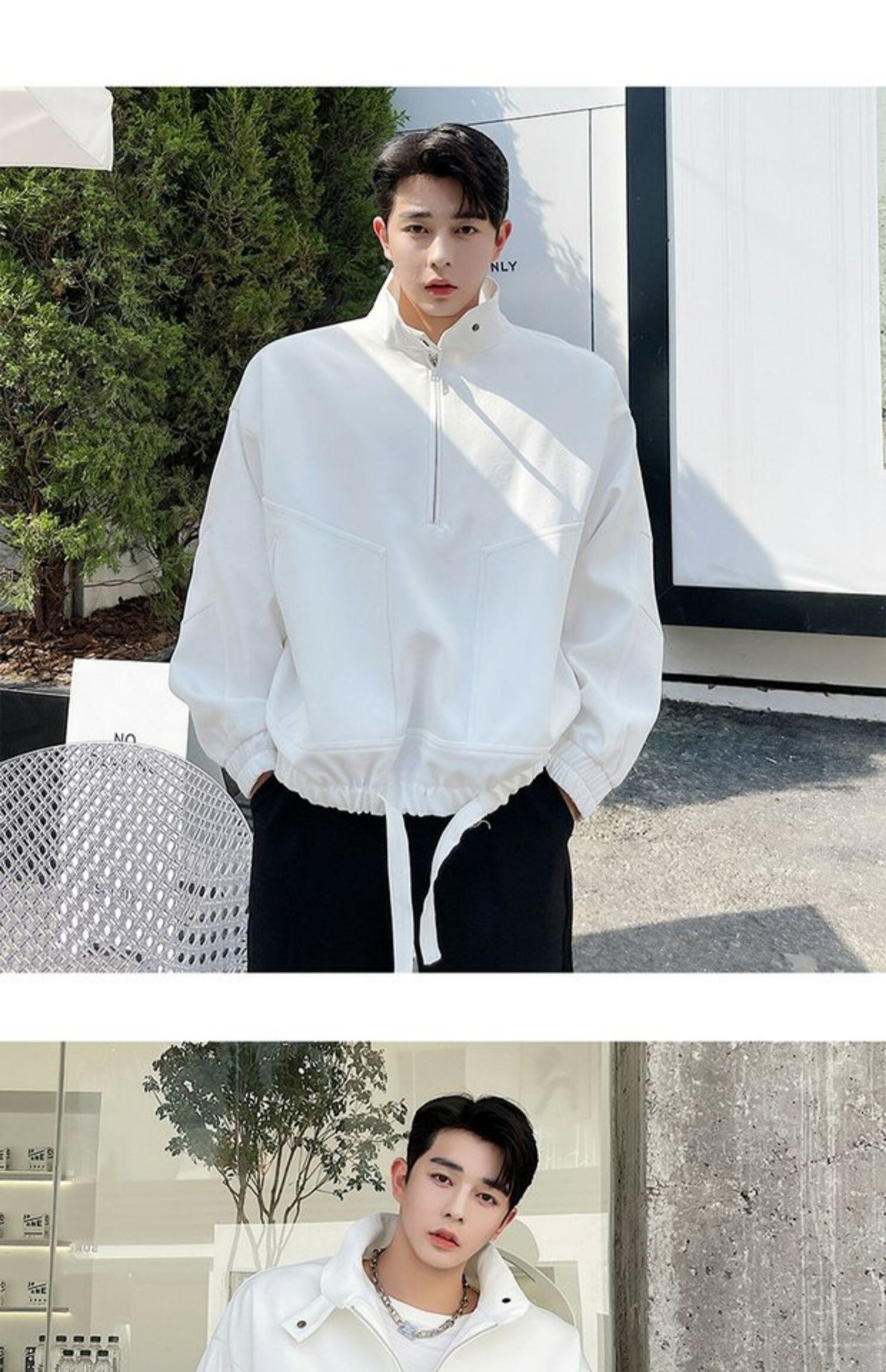 病みカッコイイ メンズファッション ストリートファッション ヒップホップ 個性的 裏原 カラージャケット スプリングオータムショートプルオーバー ルーズソリッド トップス 春物 秋物 ソリッドカラー ✝ おしゃれ メンズ 44812422639