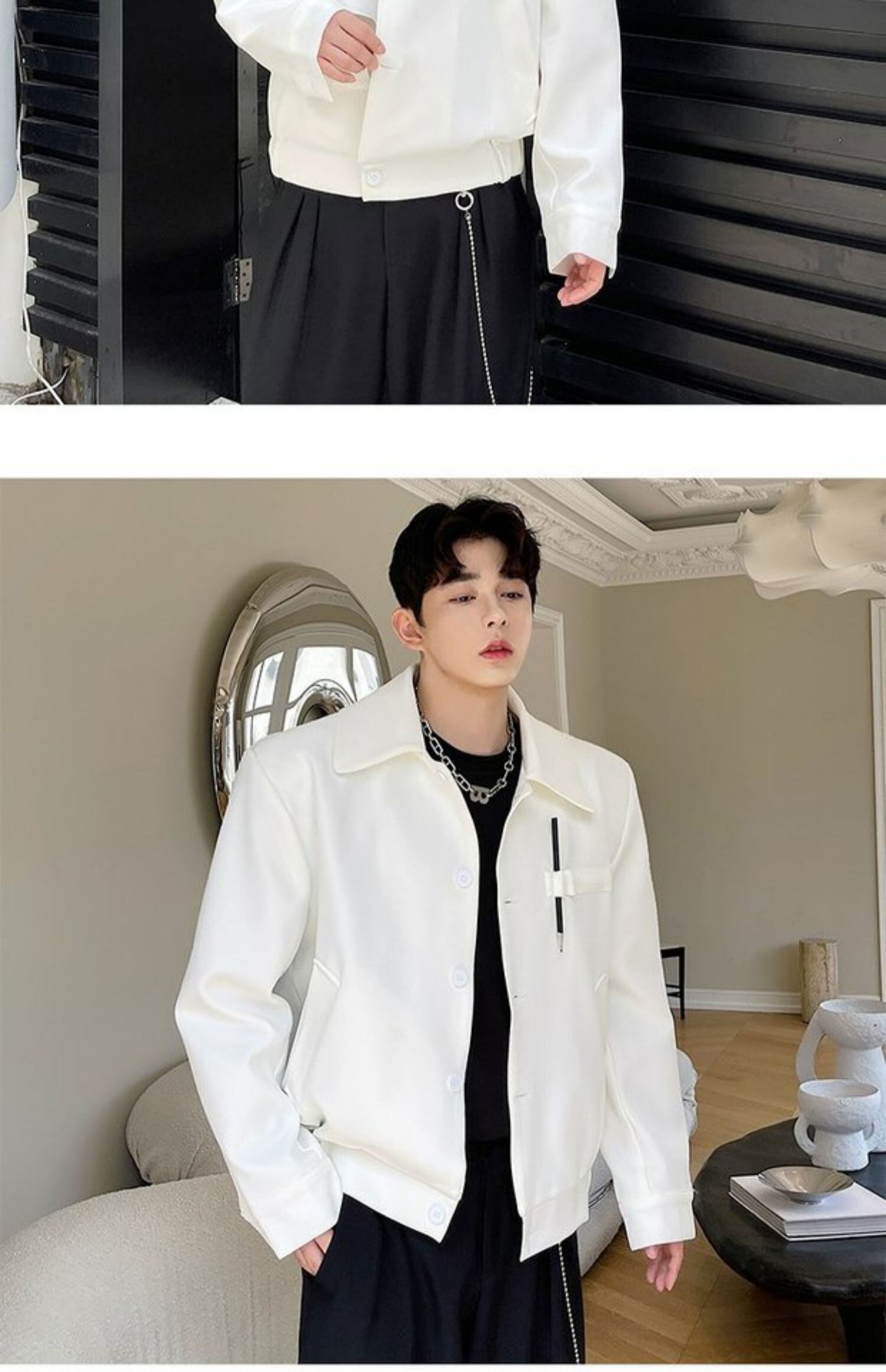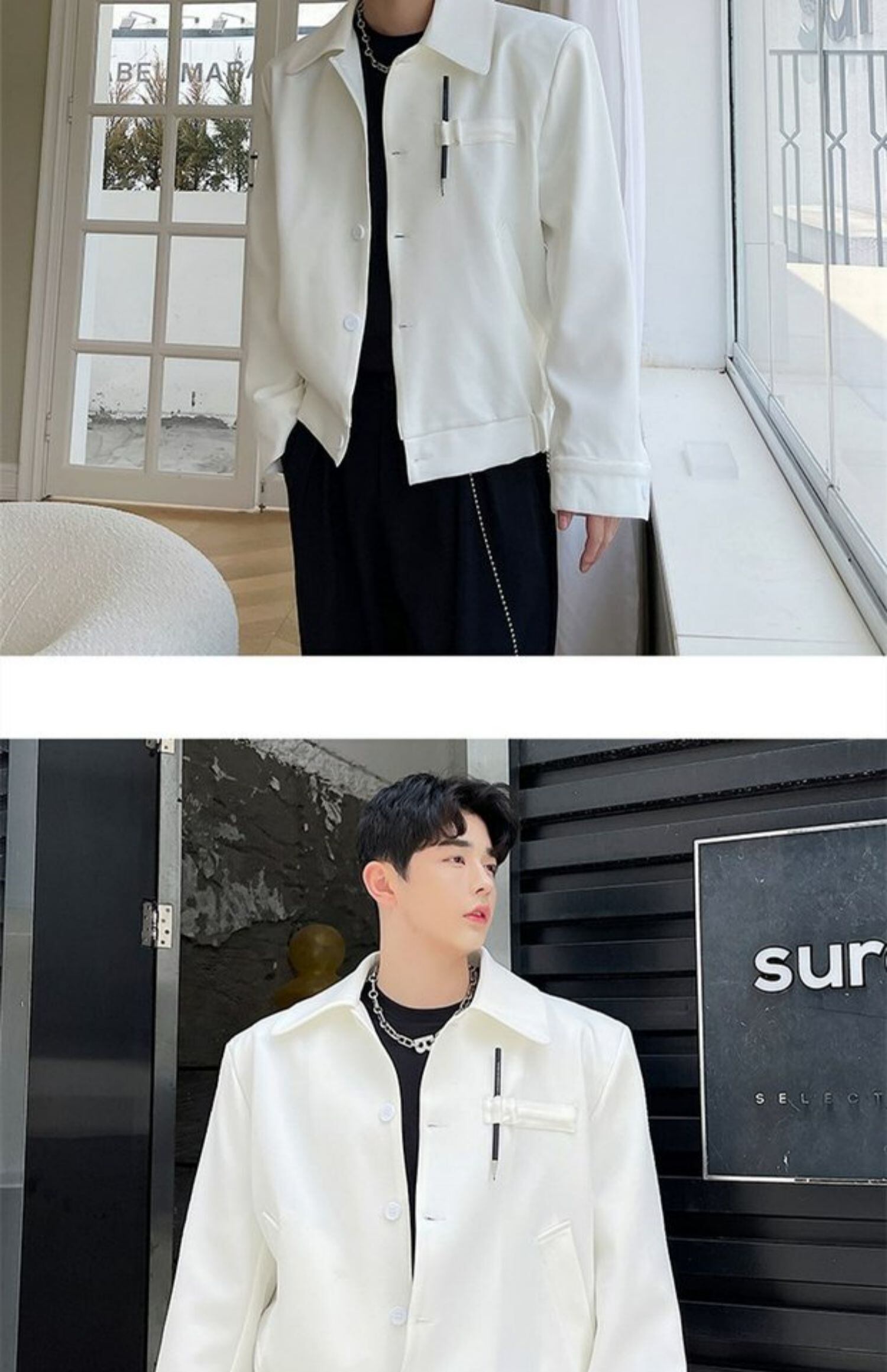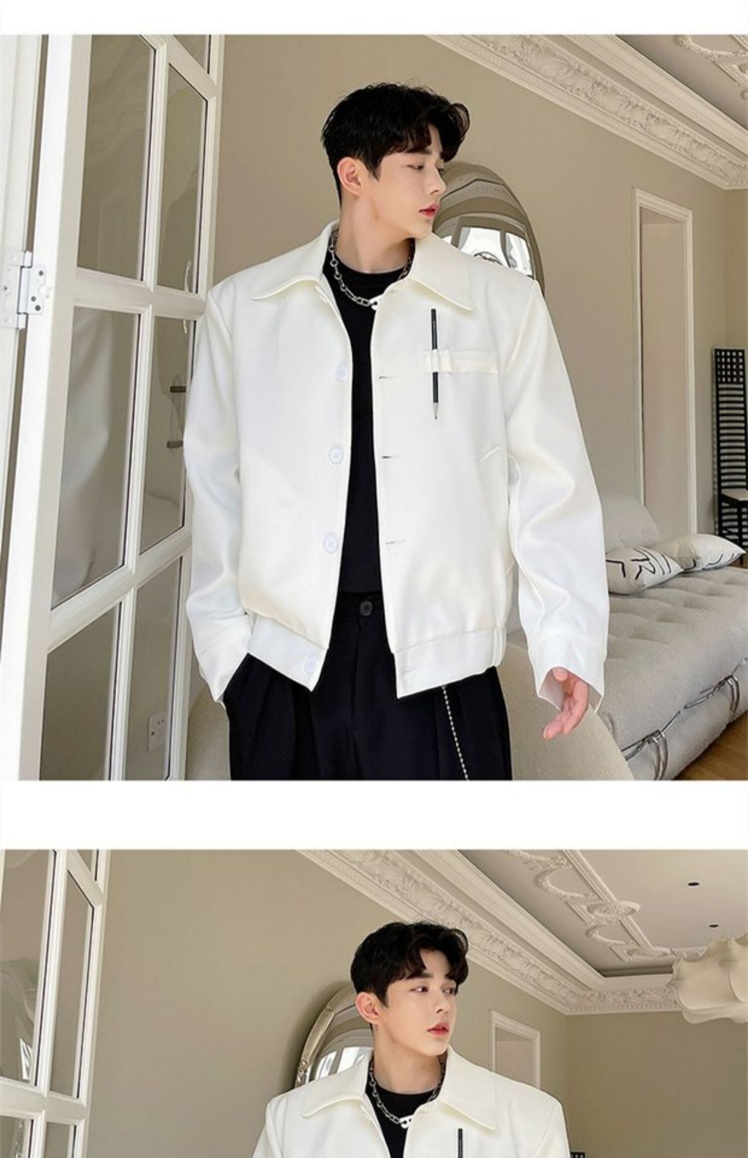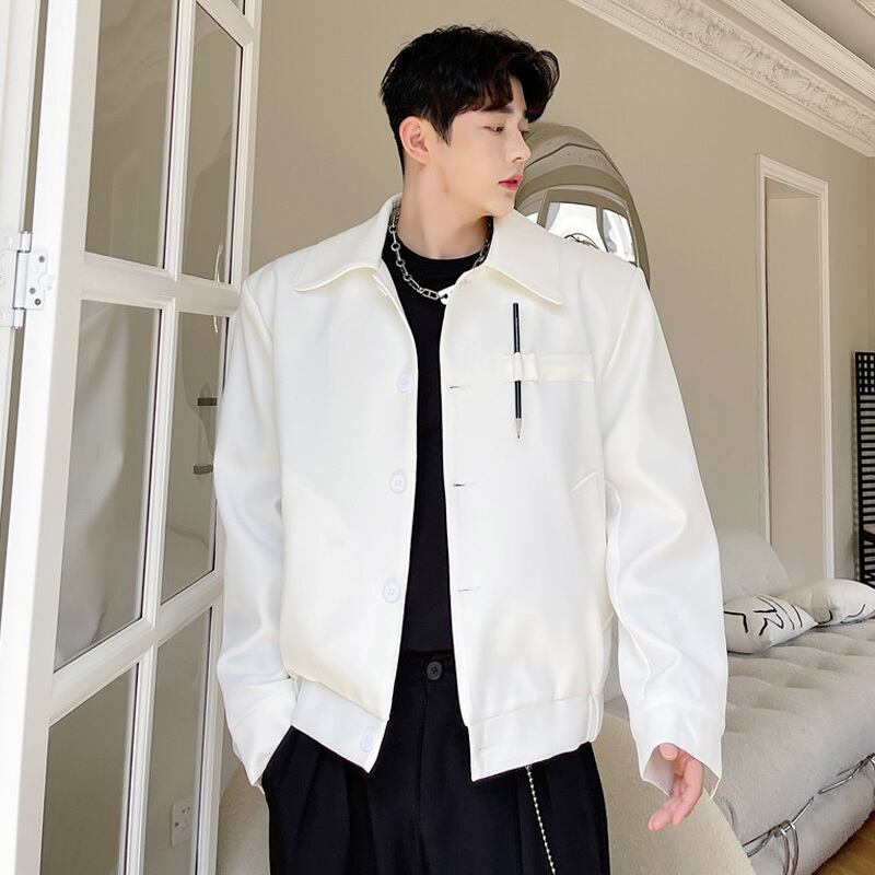 病みカッコイイ メンズファッション ストリートファッション ヒップホップ 個性的 裏原 オータムスタンダードホワイトカジュアルジャケット ルーズショート レトロ 秋物 ✝ おしゃれ メンズ 3611064795