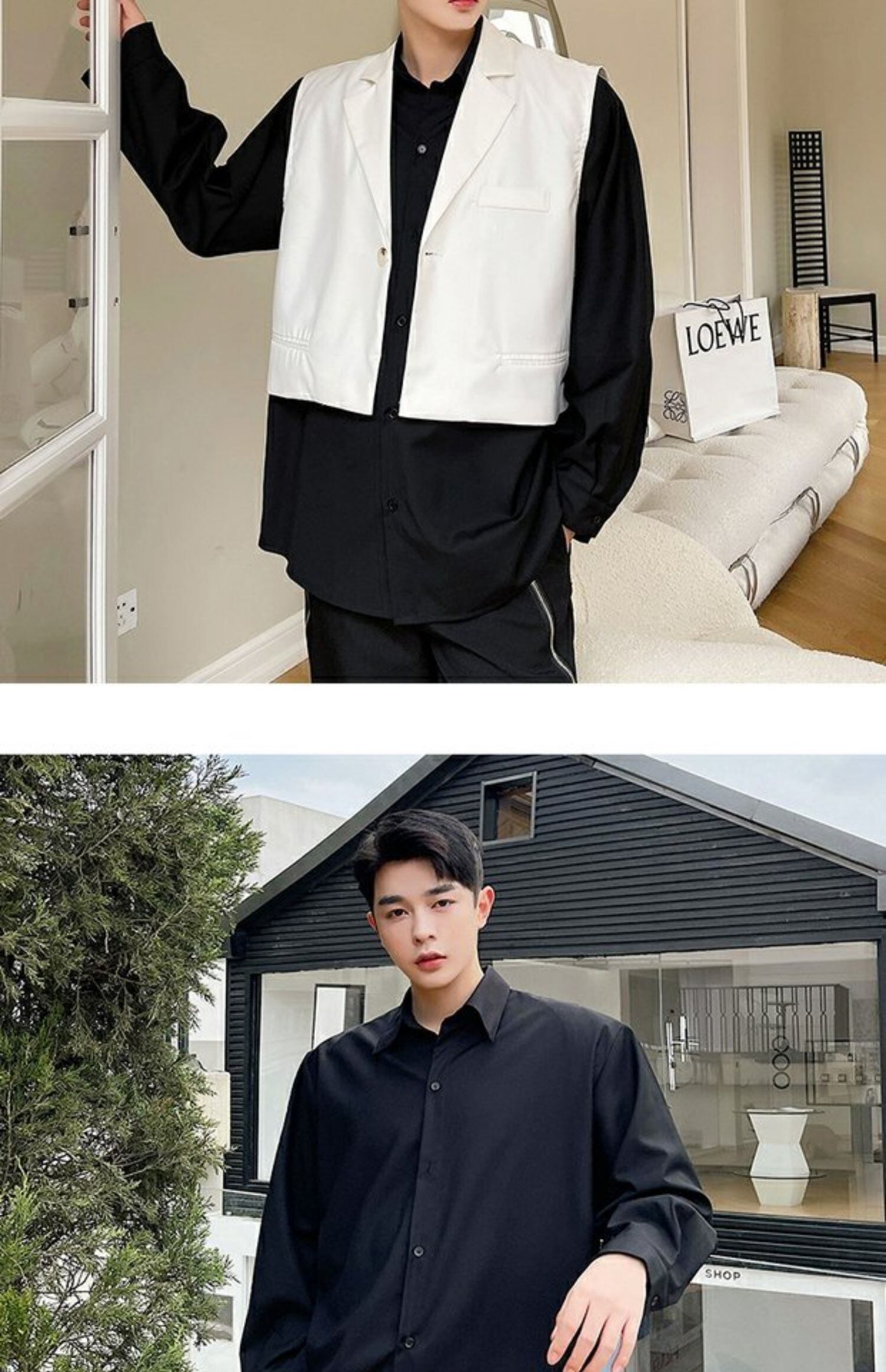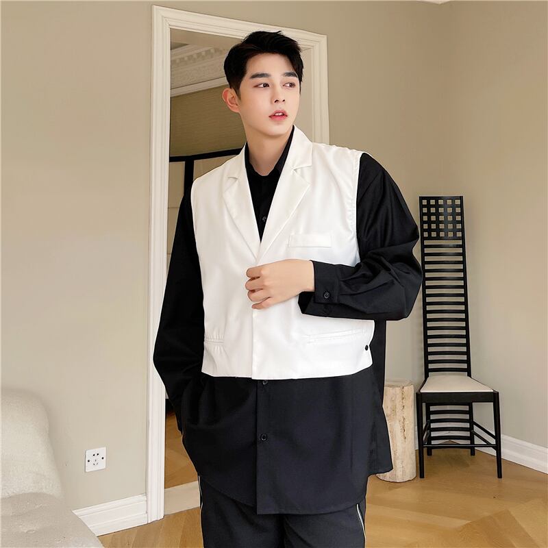 病みカッコイイ メンズファッション ストリートファッション ヒップホップ 個性的 裏原 オータムシャツ ブラックホワイトカラー ロング 秋物 ✝ おしゃれ メンズ 11473592501